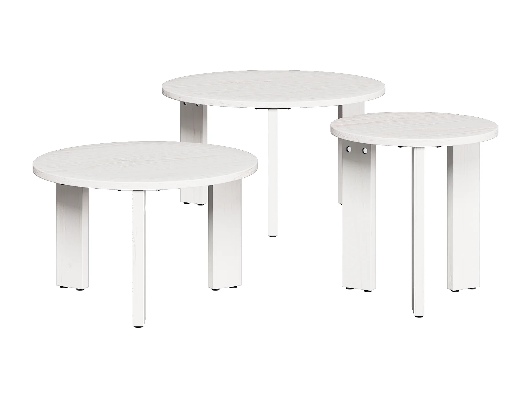 Table basse 3 pièces Blanc 46 x 46 x 47 cm Bois massif en pin