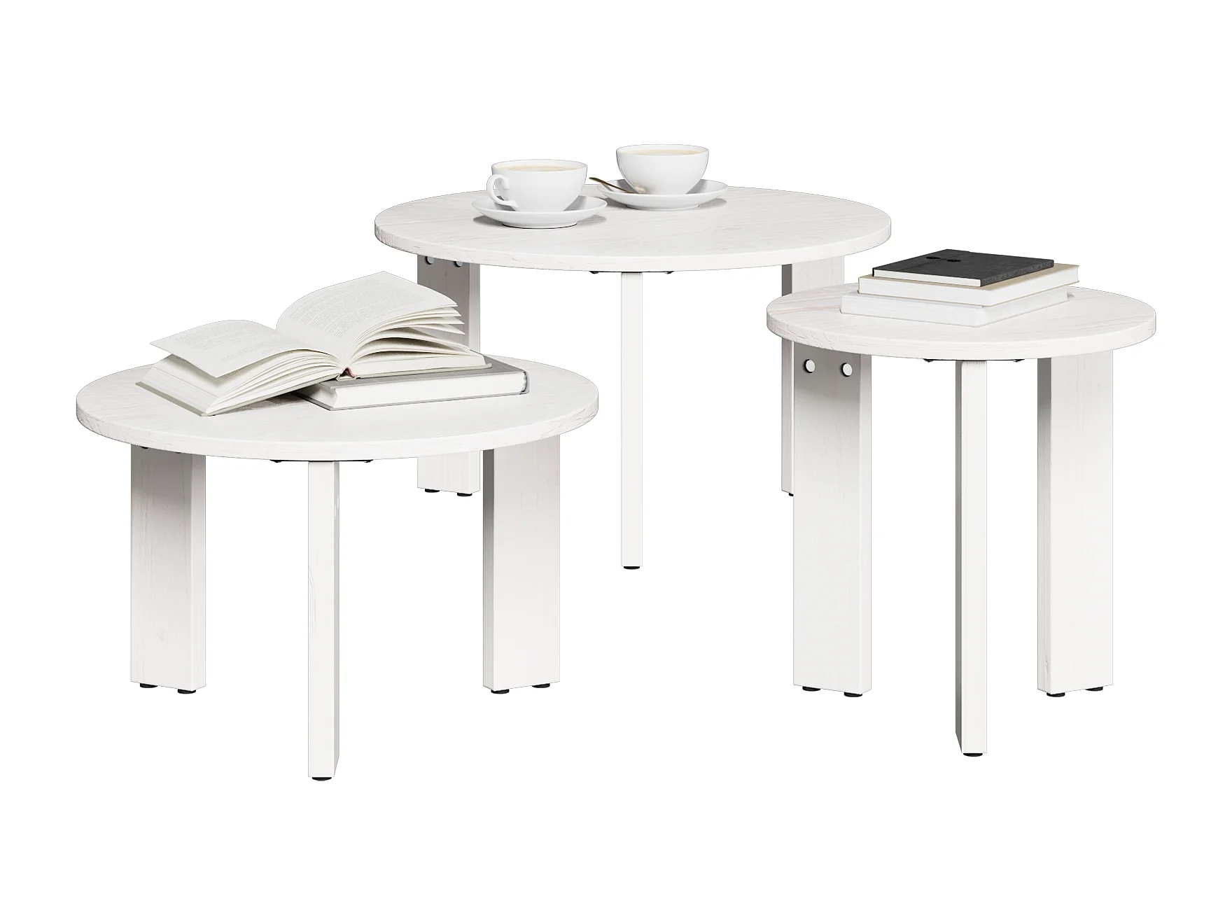 Table basse 3 pièces Blanc 49 x 49 x 30 cm Bois massif en pin