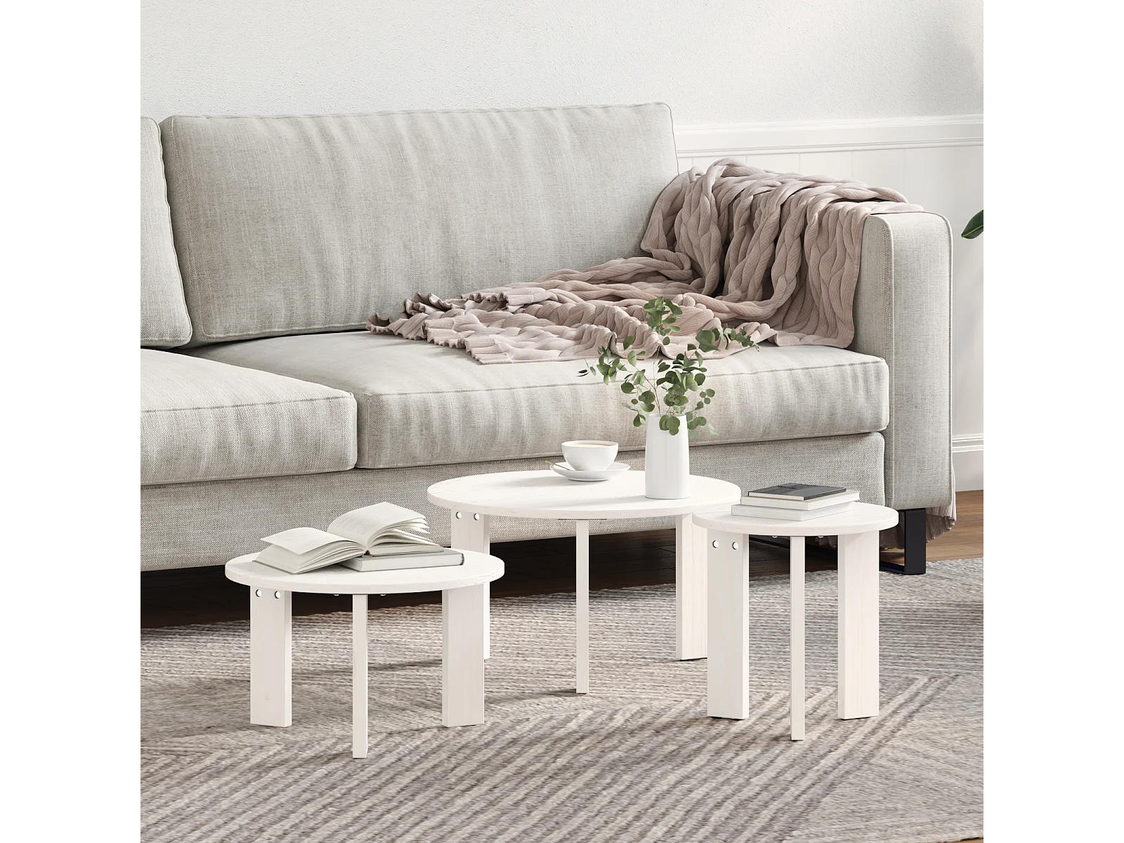 Tables gigognes 3 pièces Blanc Bois de pin massif
