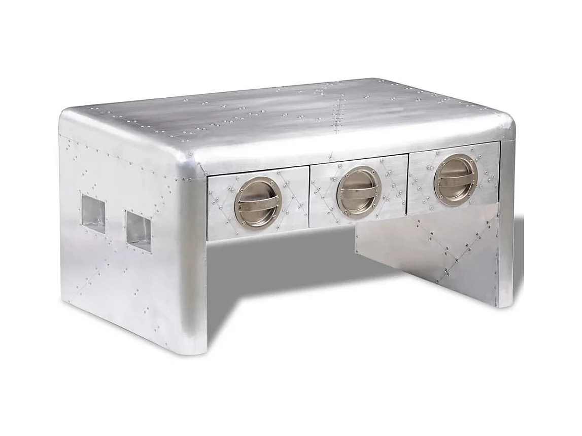 Table basse argenté acier inoxydable/bois massif récupération OFR62754 BonneVie Meuble