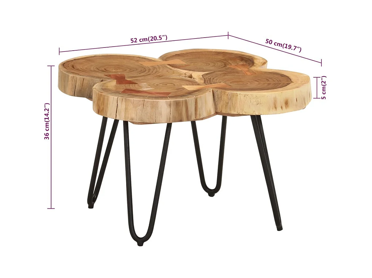 Table basse 36 cm 4 troncs bois d'acacia massif
