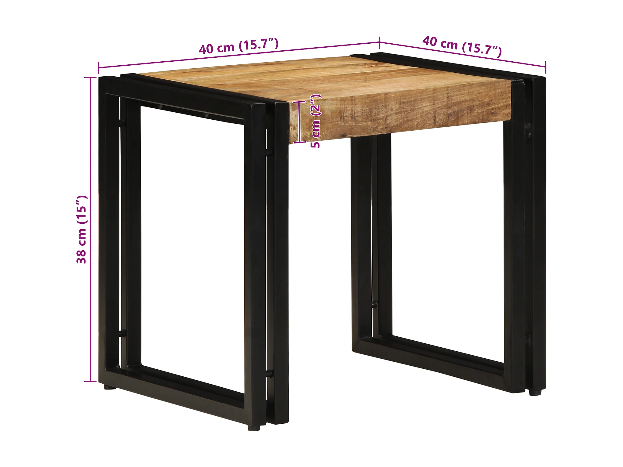 Table d'appoint 40x40x50 cm bois massif de manguier brut