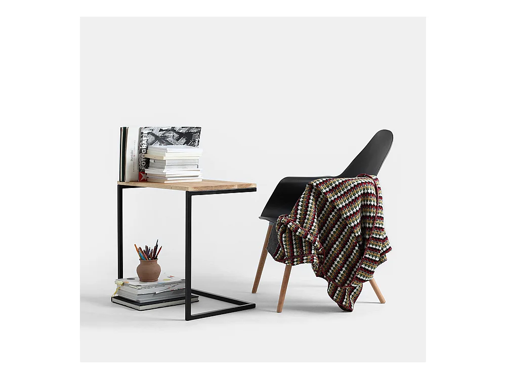 Table basse 40x60x60 cm Noir Lupe 60 Bois massif Chêne