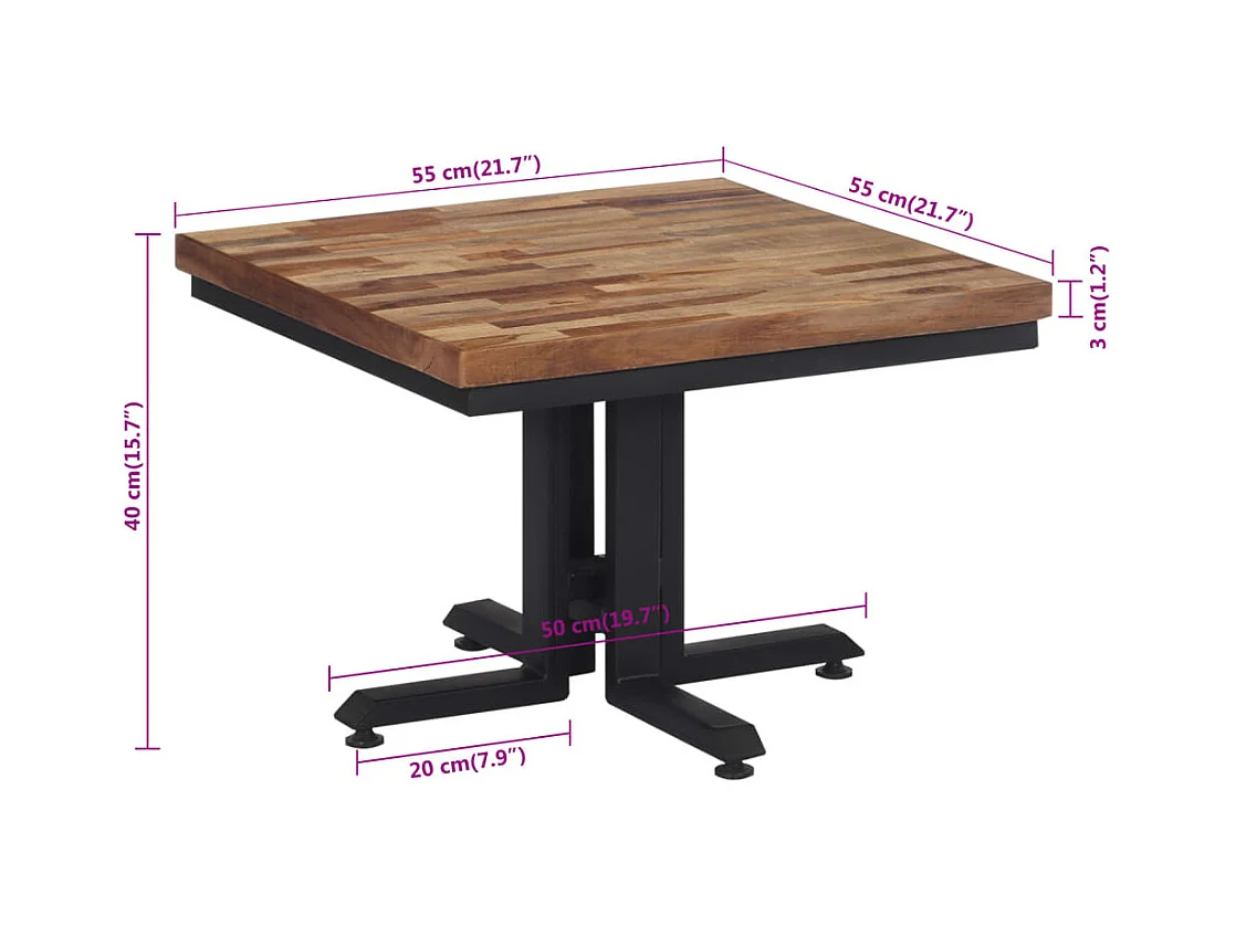 Table basse cadre en O 70x70x40 cm bois de pin massif et acier