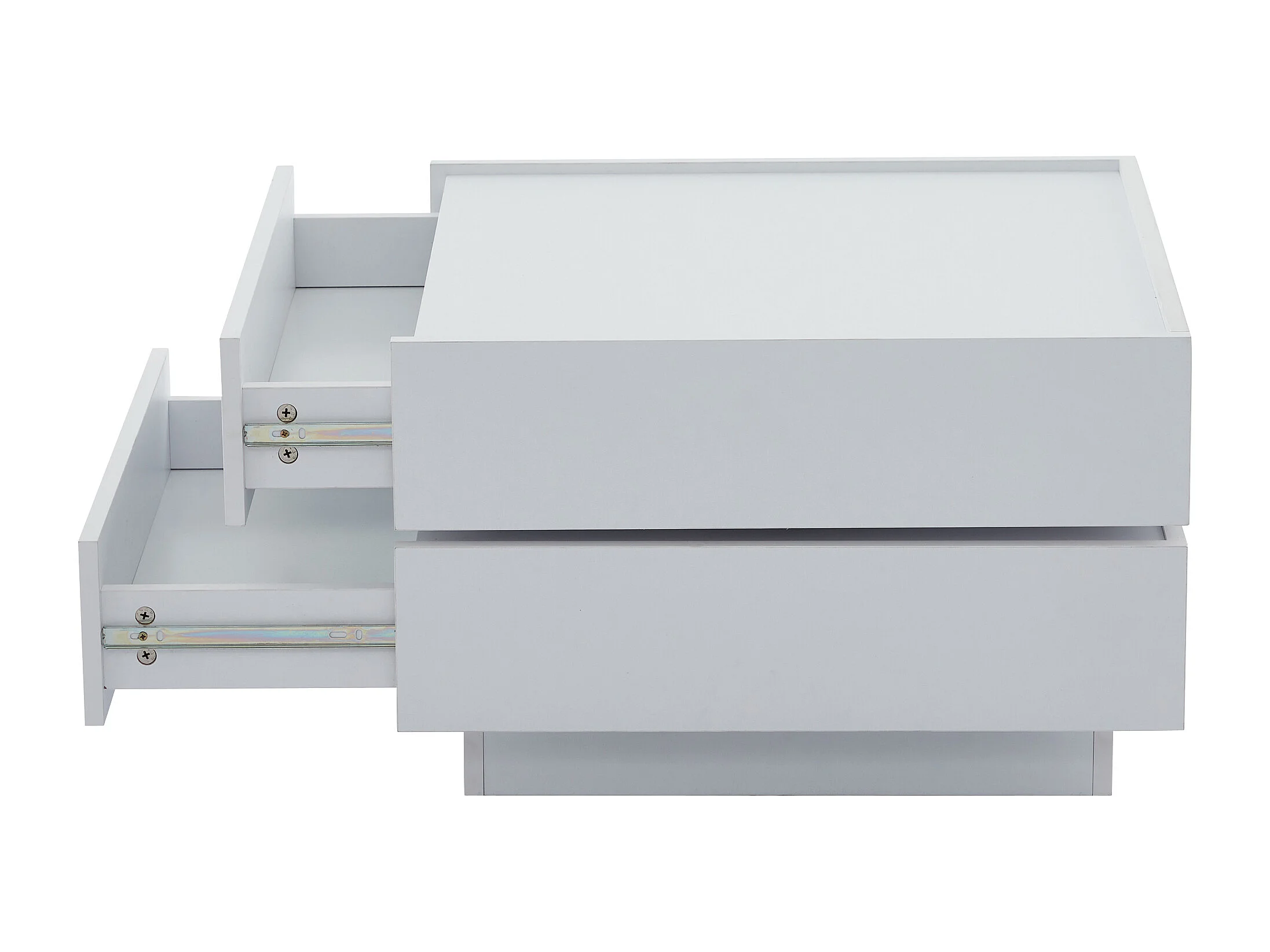 Table basse LED 70x70x41 cm verre brillant 2 tiroirs Blanc