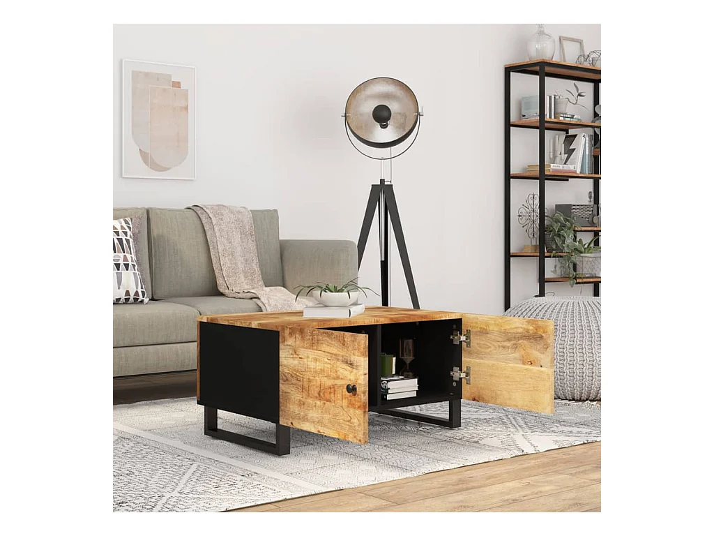 Table basse marron et noir 80x50x40 cm bois de massif manguier