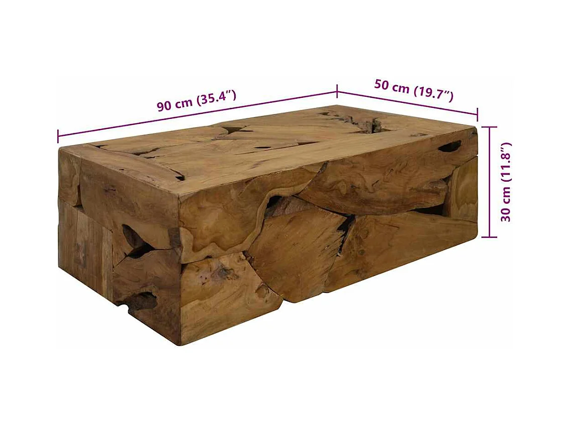 Table Basse 90x50x35 cm Bois de manguier massif rugueux