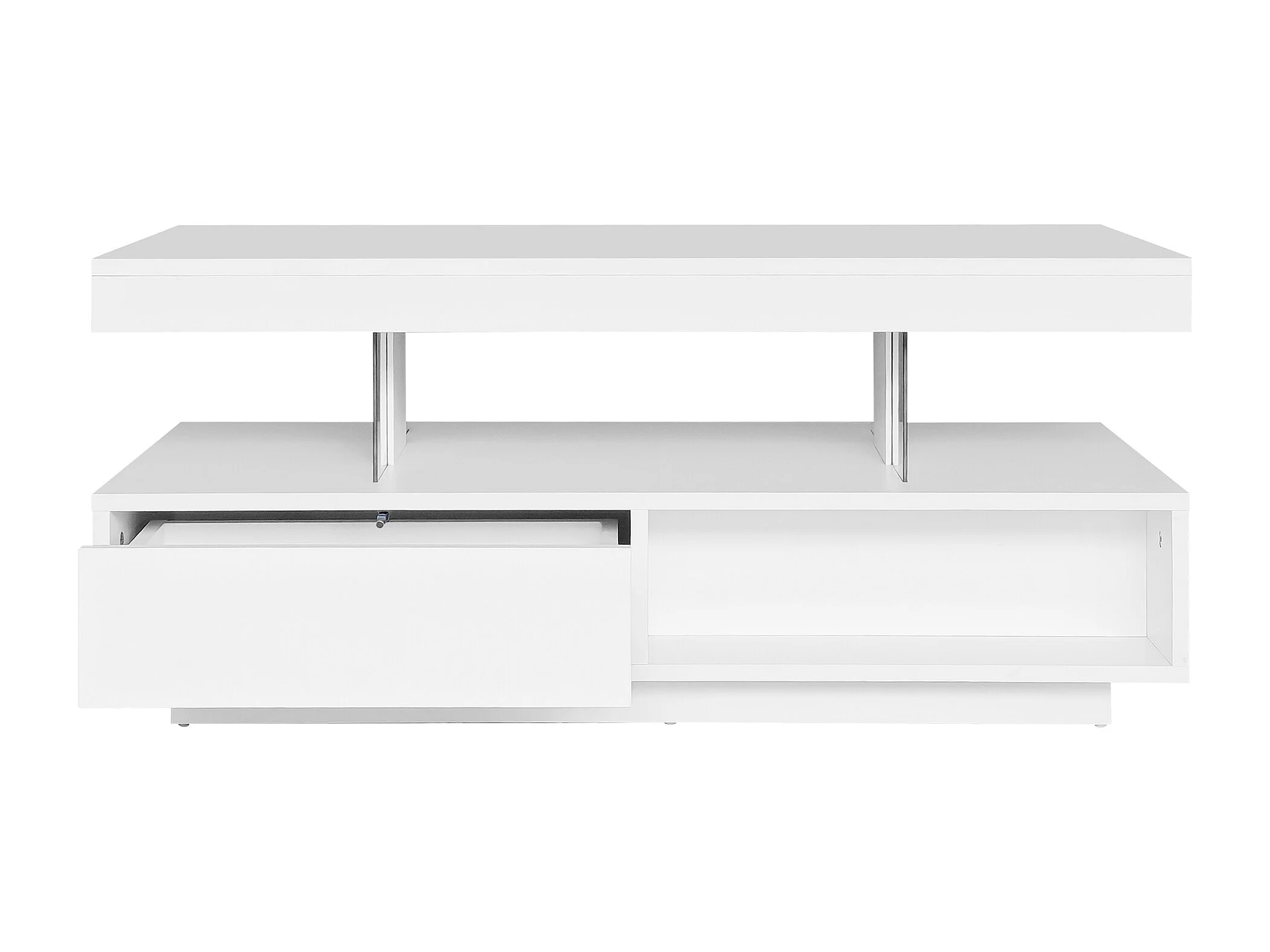 Table basse 95x50x42.5 cm brillant 4 plateaux verre 2 tiroirs 2 étagères blanc pour salon