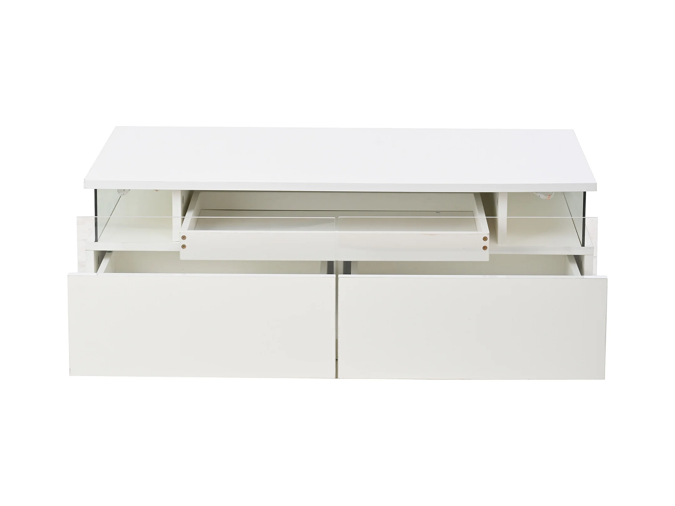 Table basse blanche - Table basse avec éclairage LED et 2 tiroirs - plateau en verre