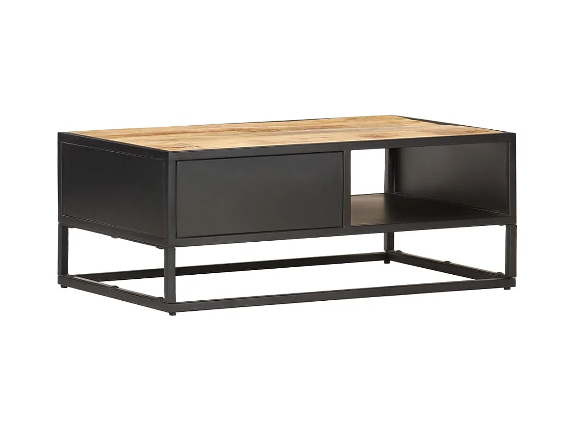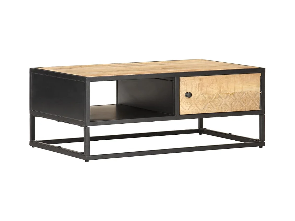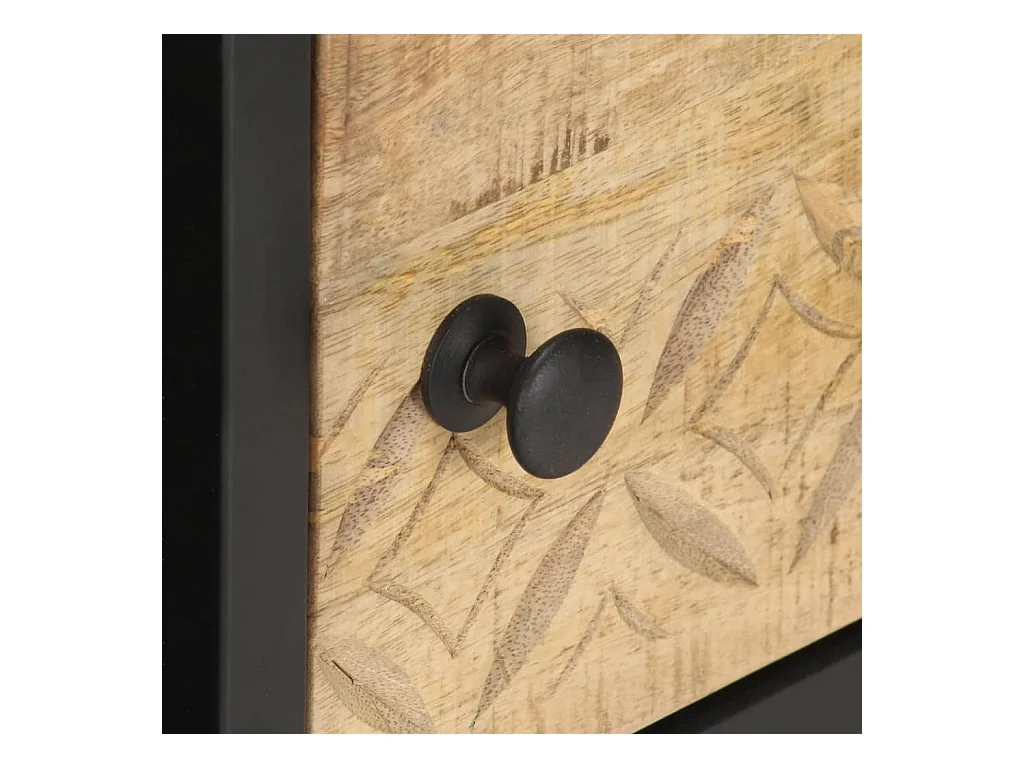 Table basse à porte sculptée 90x55x36 cm Bois de manguier brut