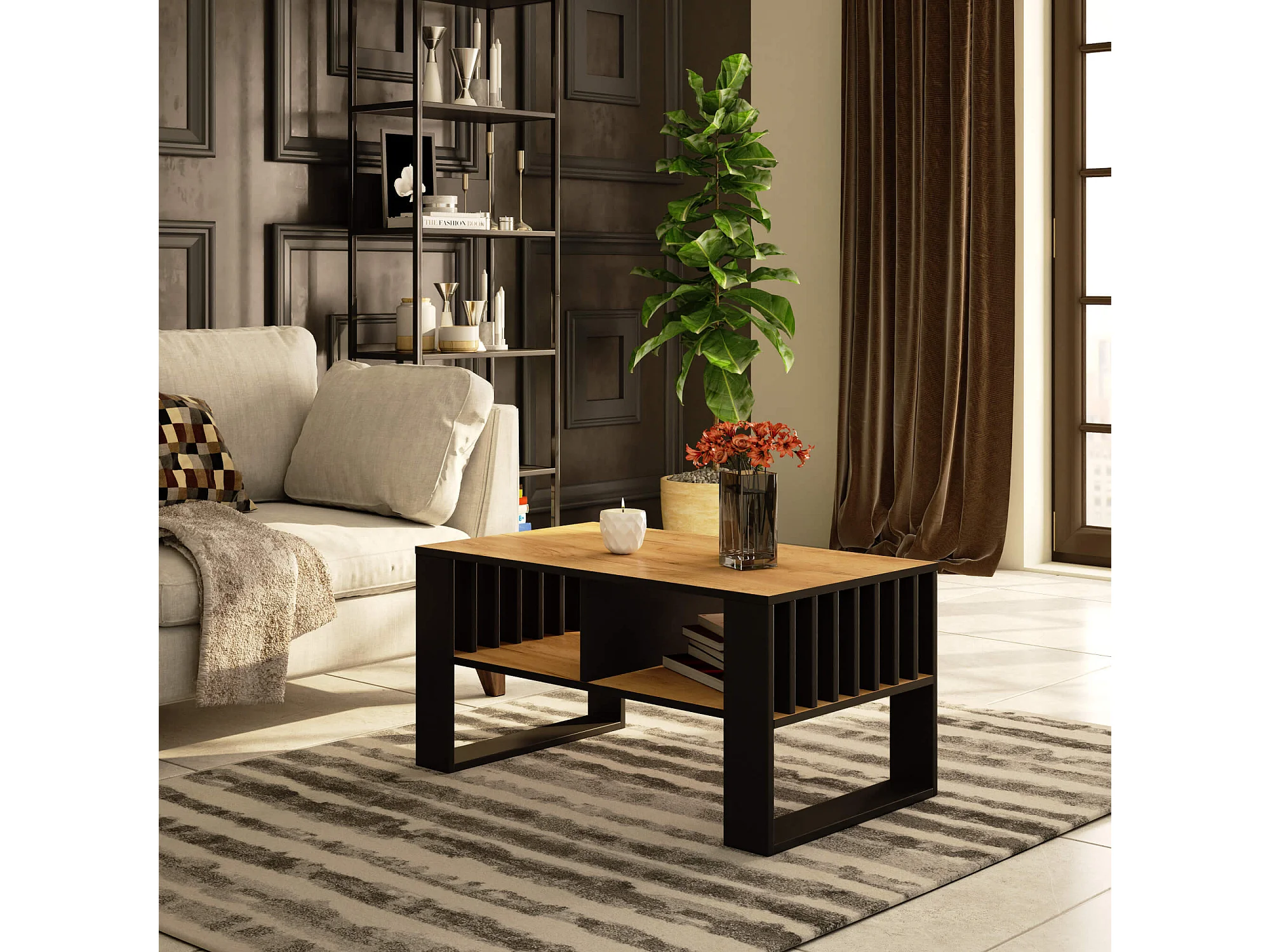 Table basse AKORD ROCKFORD Chêne Craft 92 cm pieds Noirs 92x53x45 cm