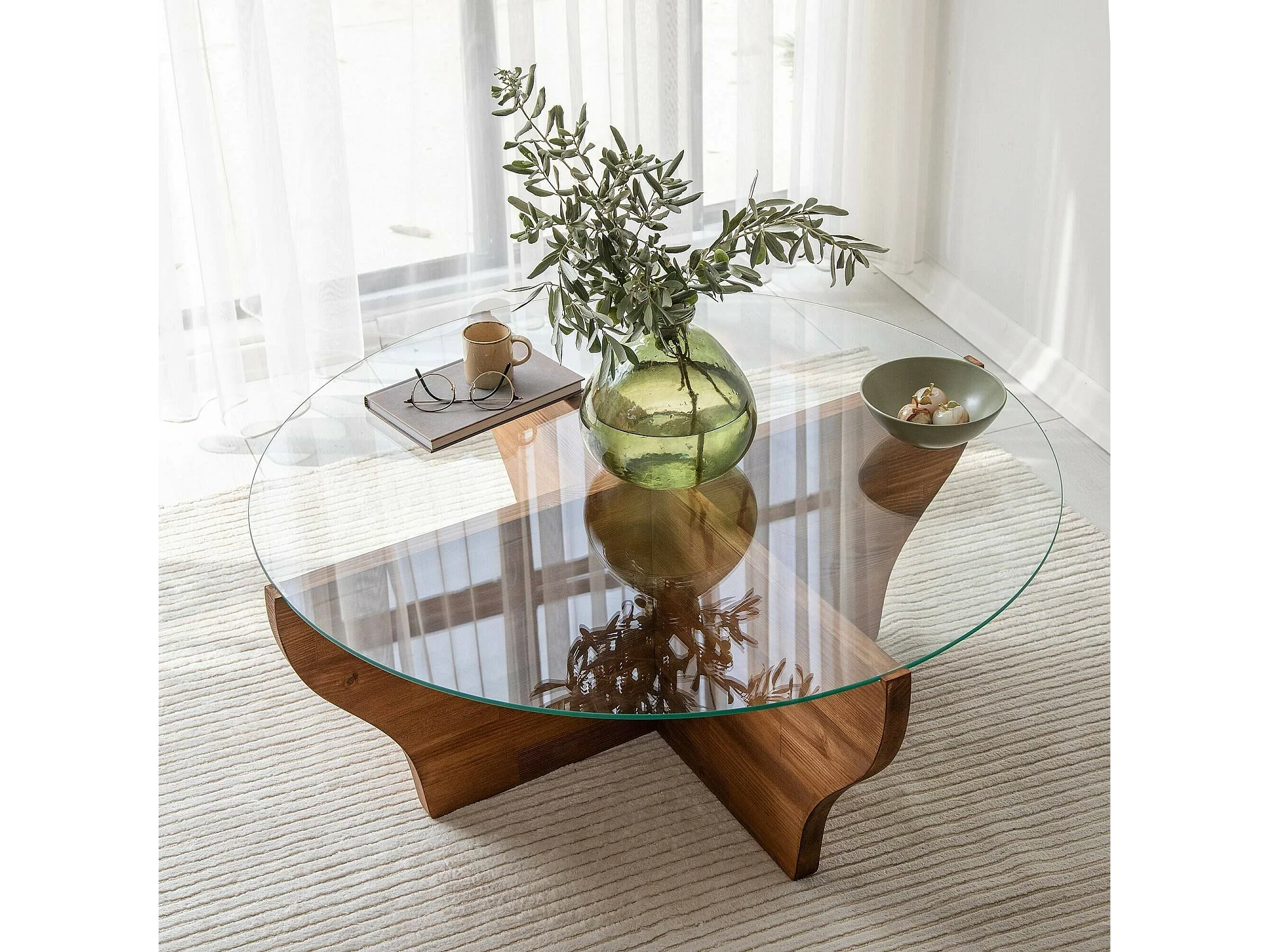 Table basse Almach, Table basse, Porte-revues pour canapé, Etagère de salon, 92x92h36 cm, Chêne