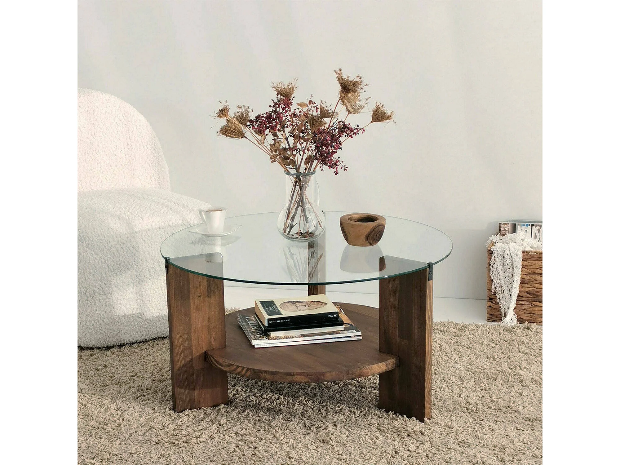 Table basse Alnitak, Table basse, Porte-revues pour canapé, Etagère de salon, 75x75h40 cm, Noyer