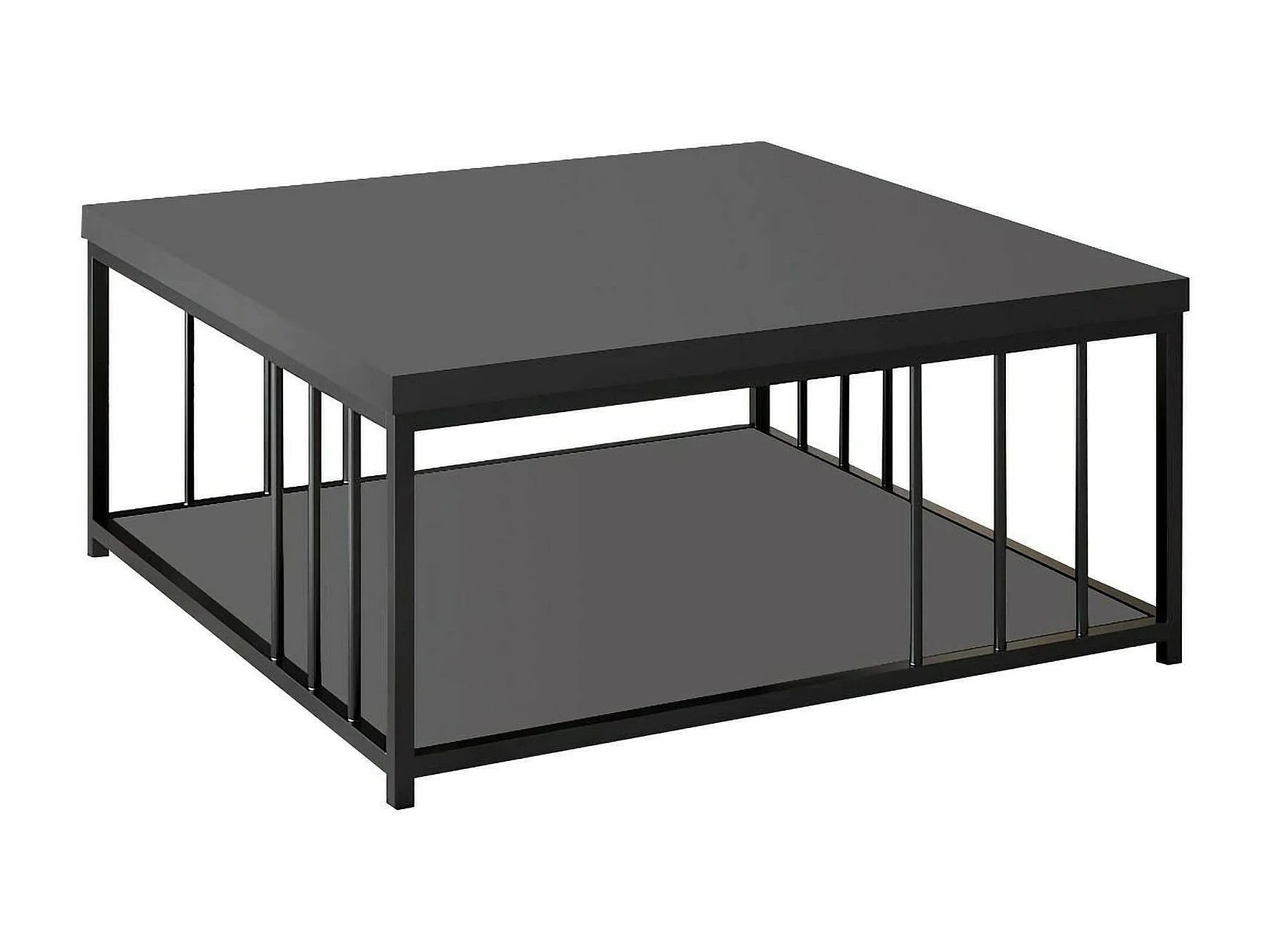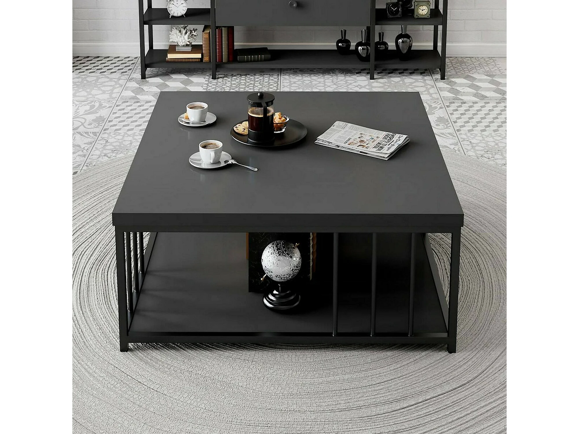 Table basse Ankaa, Table basse, Porte-revues pour canapé, Etagère de salon, 90x90h40 cm, Anthracite et Noir