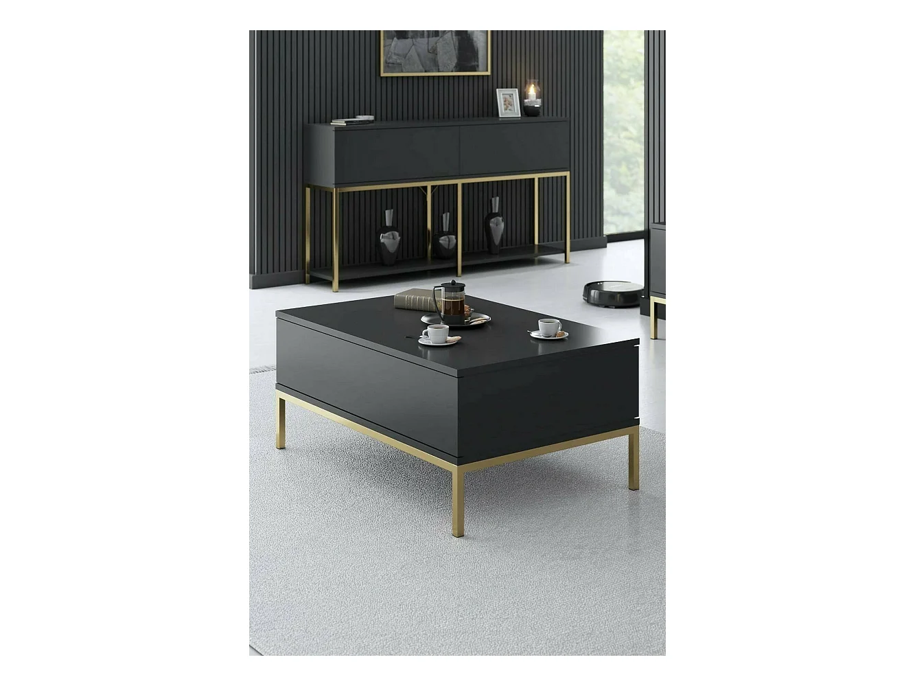 Table basse Antares, Table basse, Porte-revues pour canapé, Etagère de salon, 90x60h40 cm, Anthracite et Or