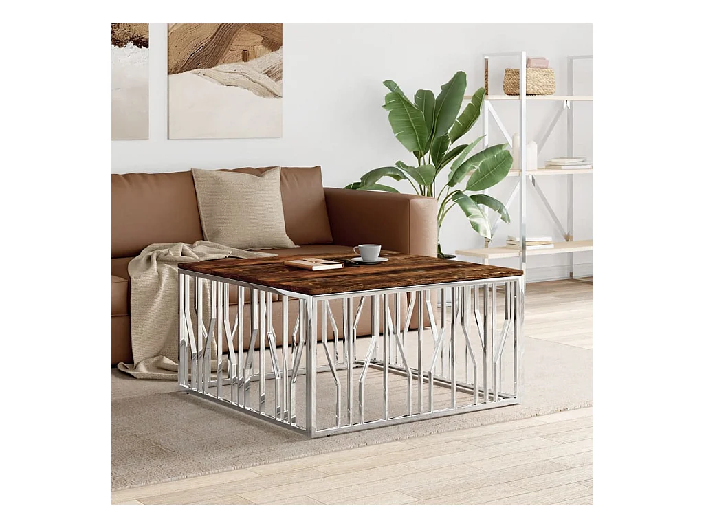 Table basse argenté acier inoxydable et bois massif d'acacia