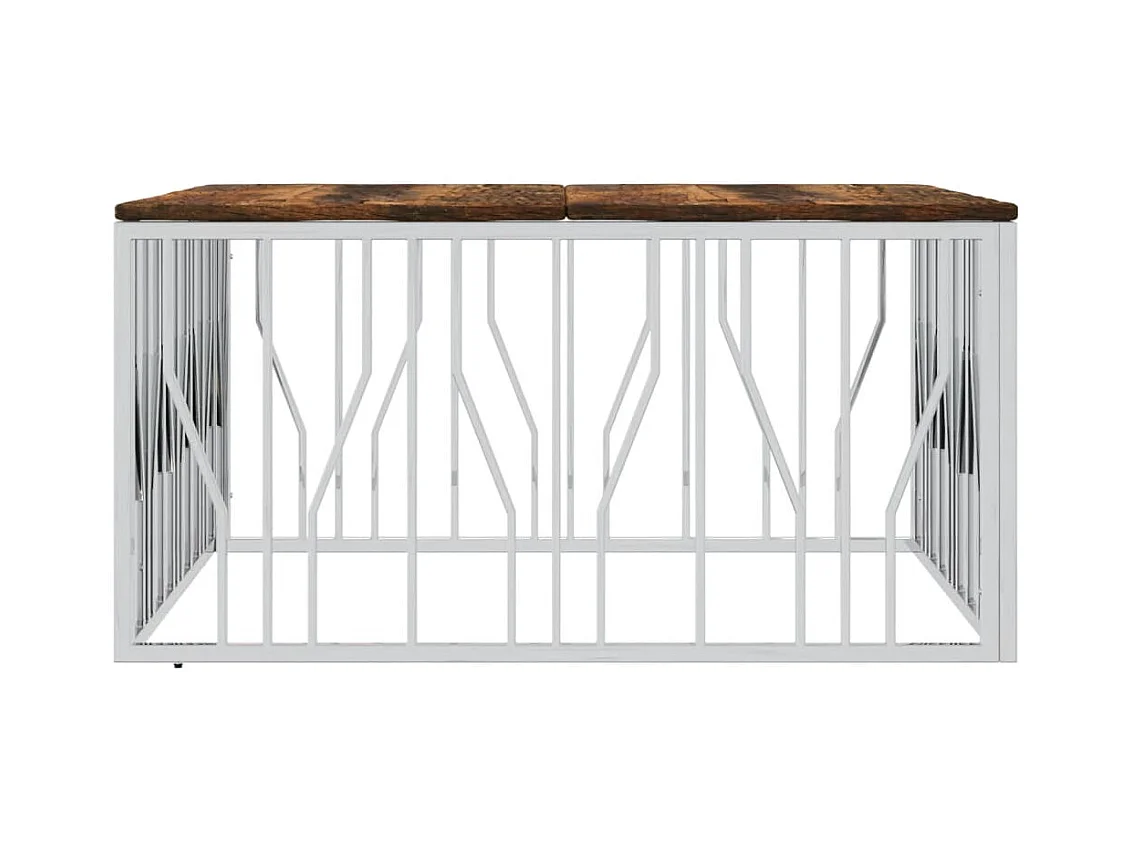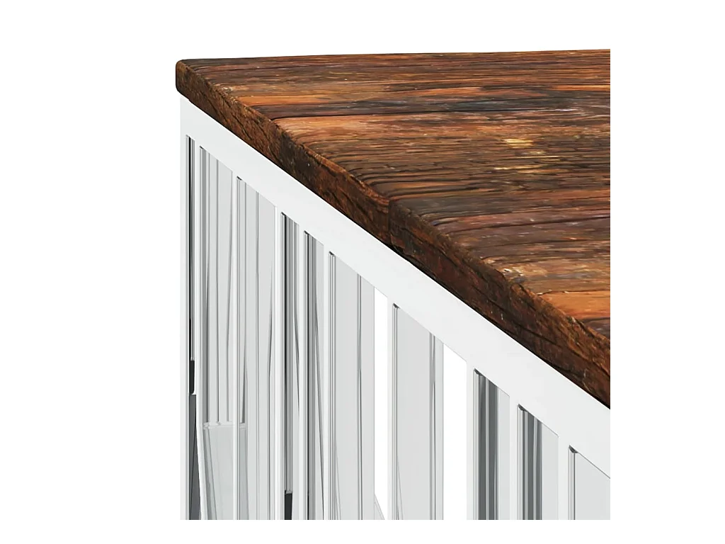 Table basse argenté acier inoxydable/bois massif récupération