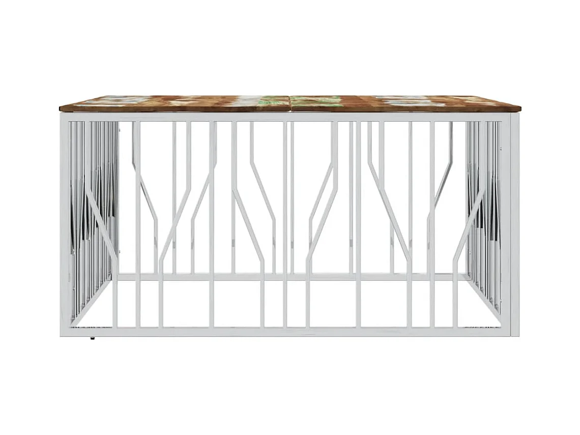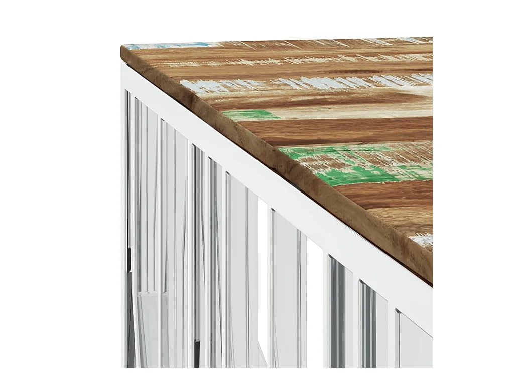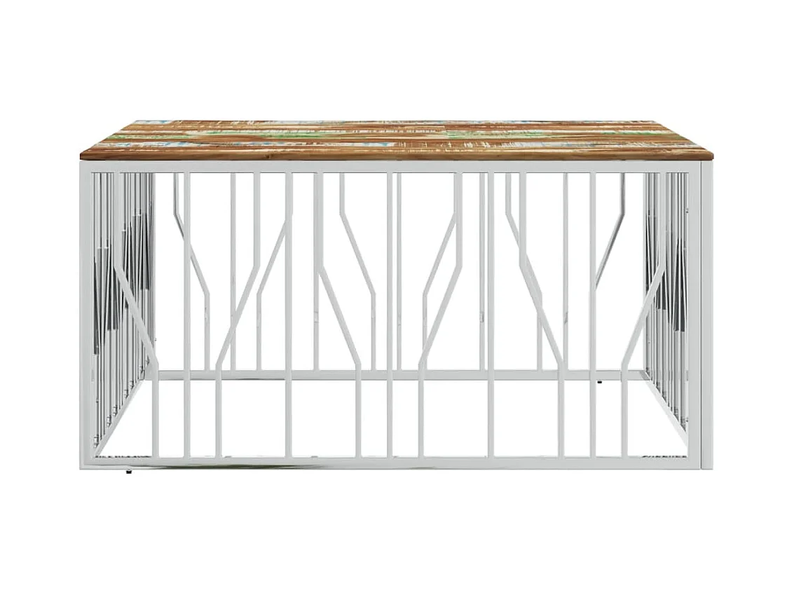 Table basse argenté acier inoxydable et bois massif d'acacia