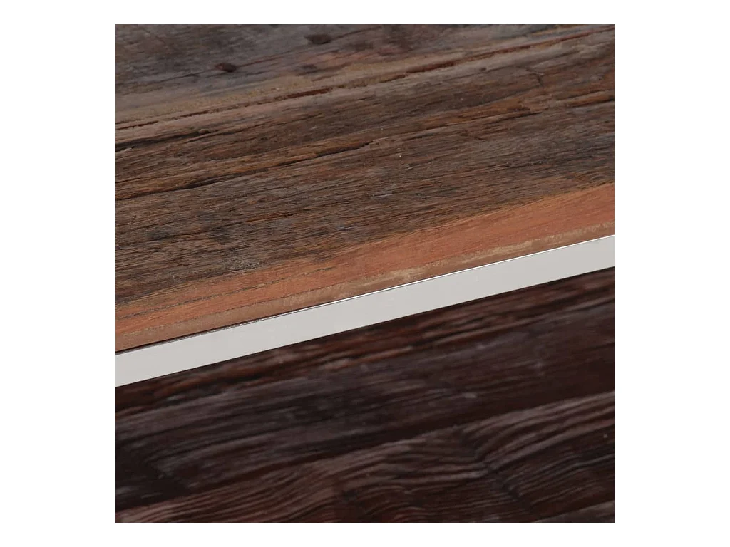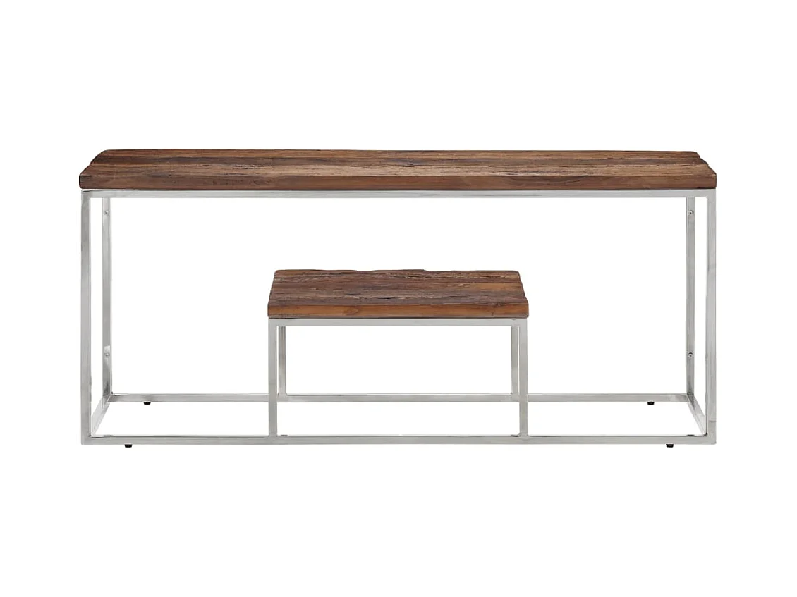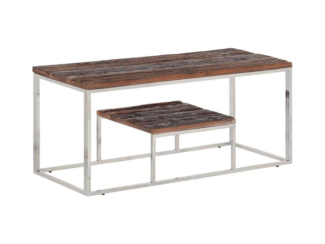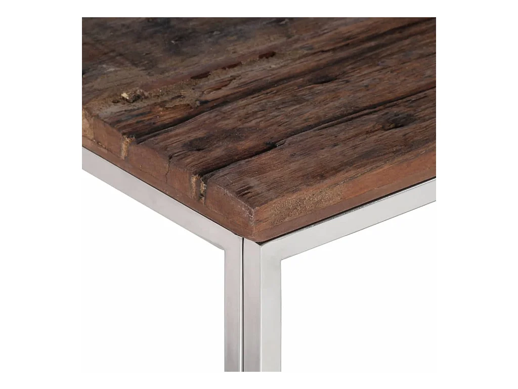 Table basse argenté acier inoxydable/bois massif récupération FR19371