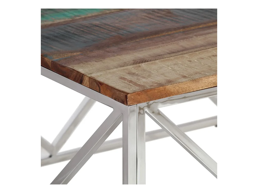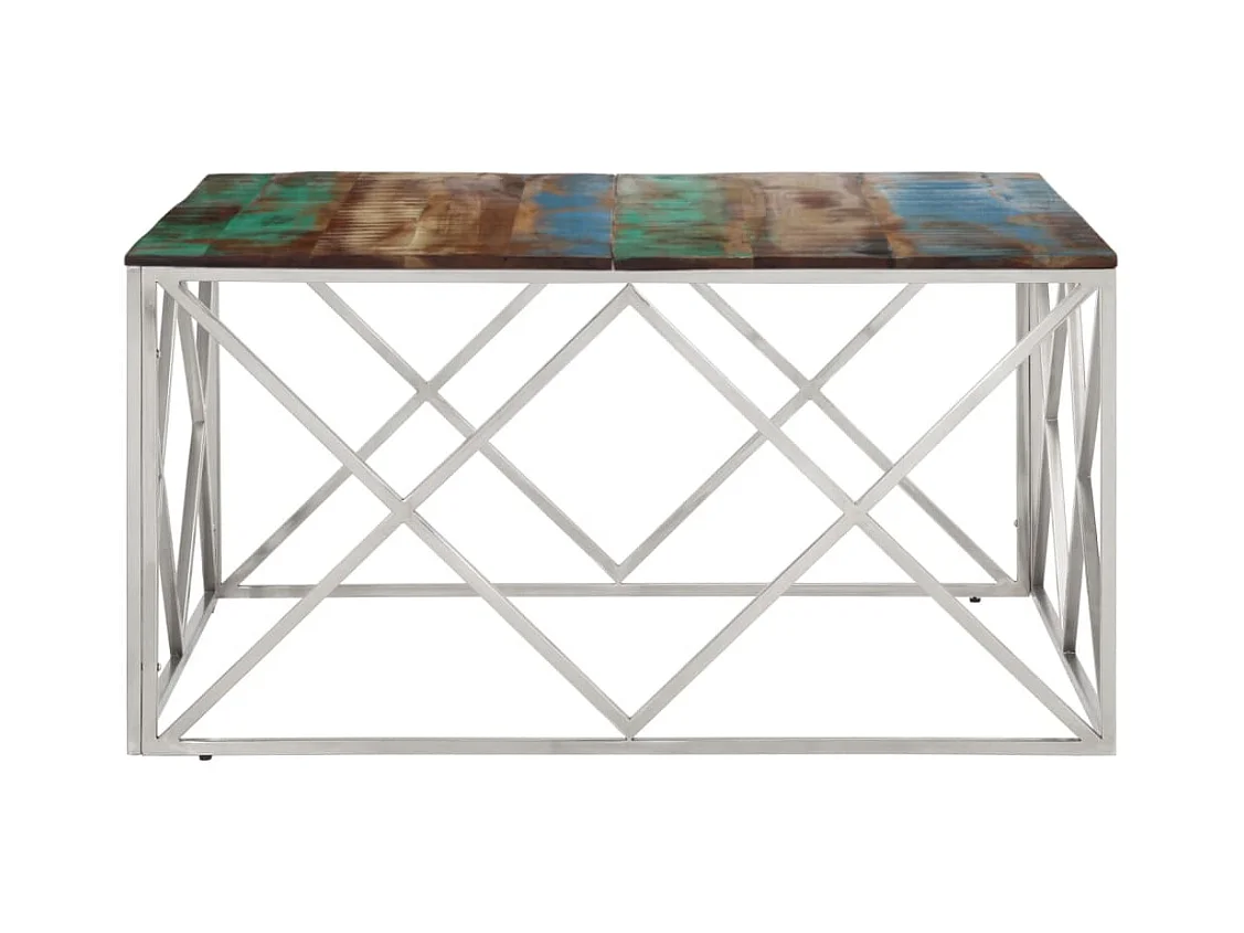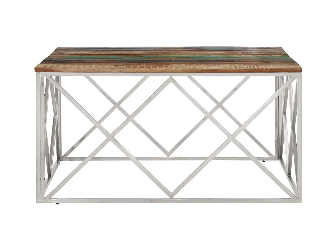 Table basse argenté acier inoxydable et bois de mélèze massif