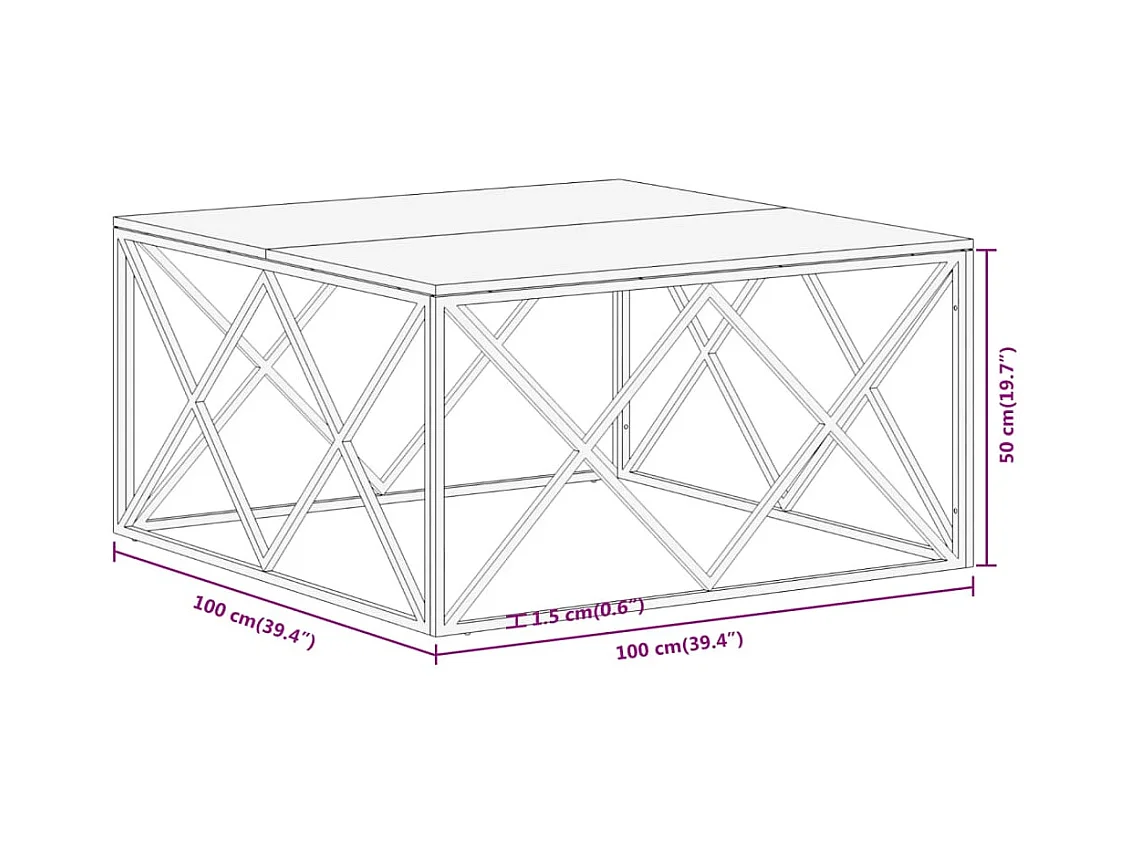 Table basse argenté 80x80x40 cm acier inoxydable et verre