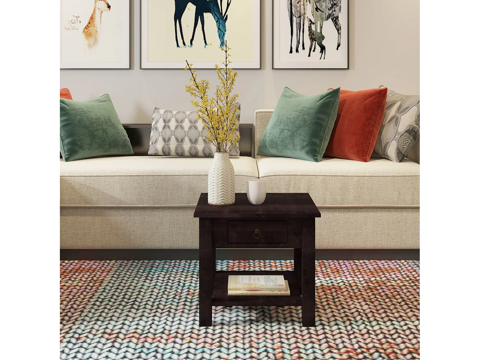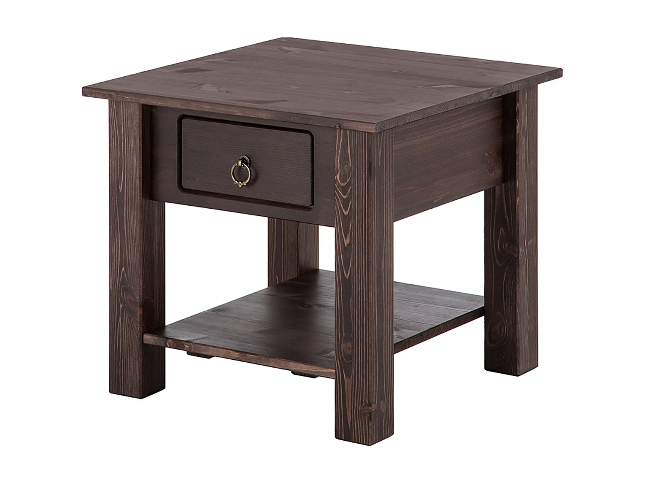 Ines | Table basse avec 1 tiroir en pin marron foncé