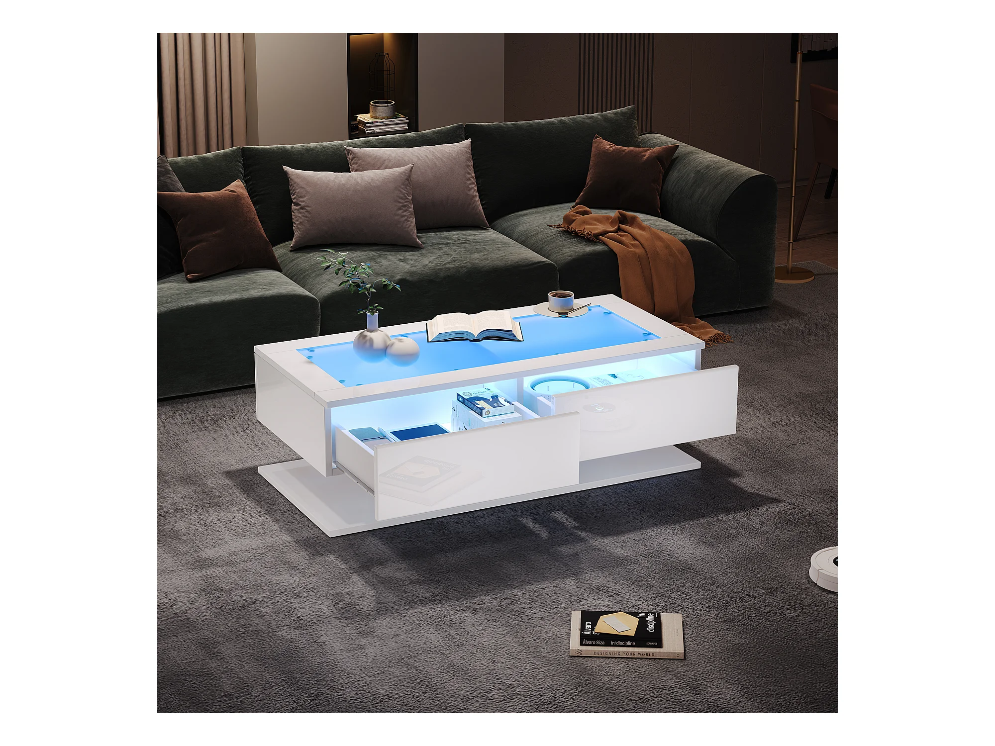 Table basse - avec système d'éclairage LED contrôlé par application - Blanc