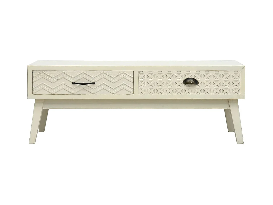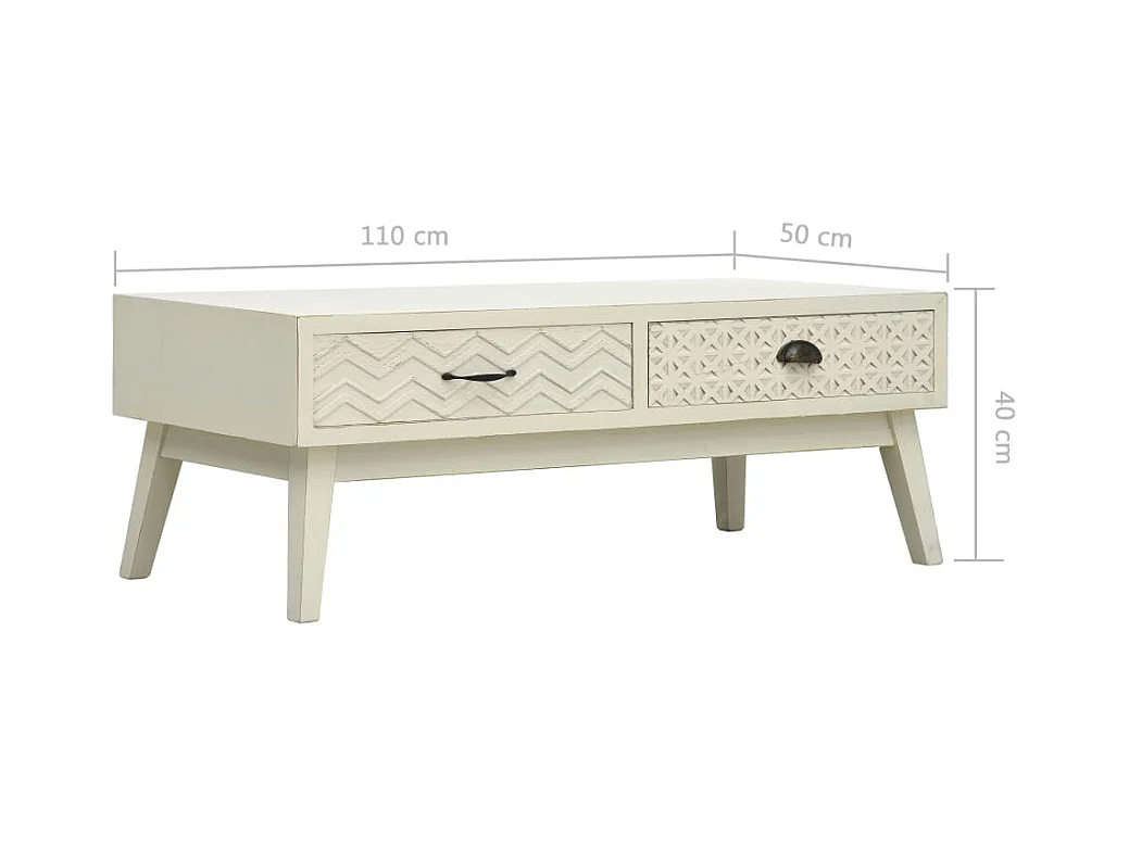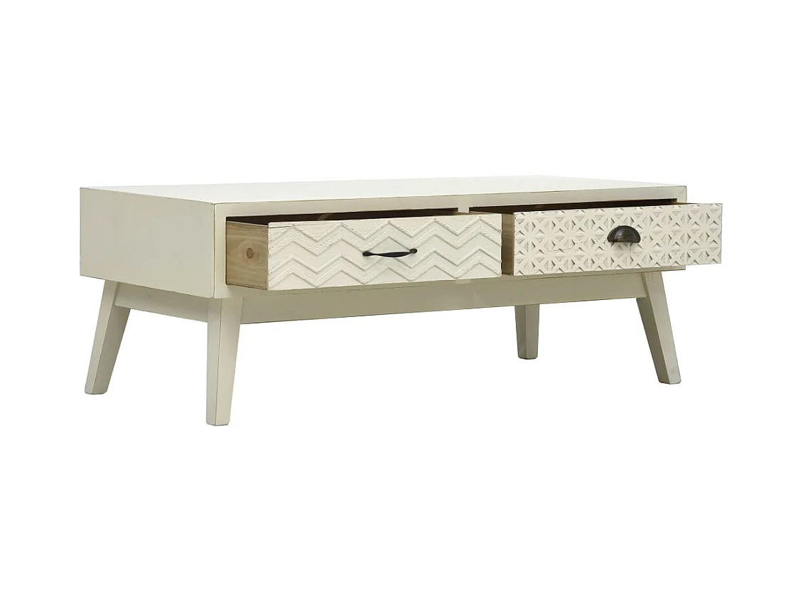 Table basse avec 2 tiroirs Gris sculpté 110x50x40 cm Bois