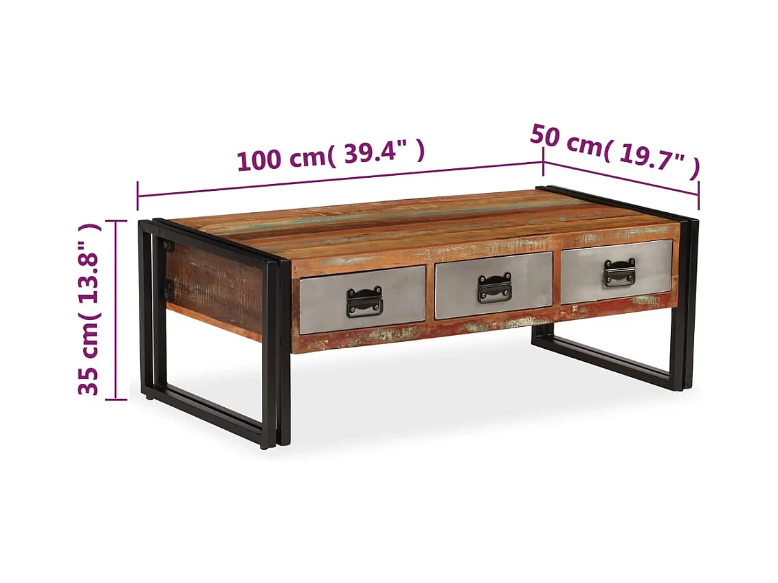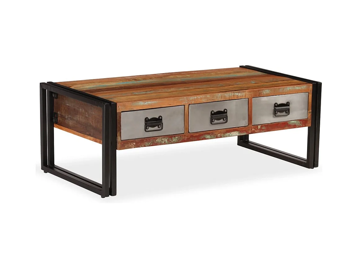 Table basse avec 3 tiroirs Bois de récupération 100x50x35 cm