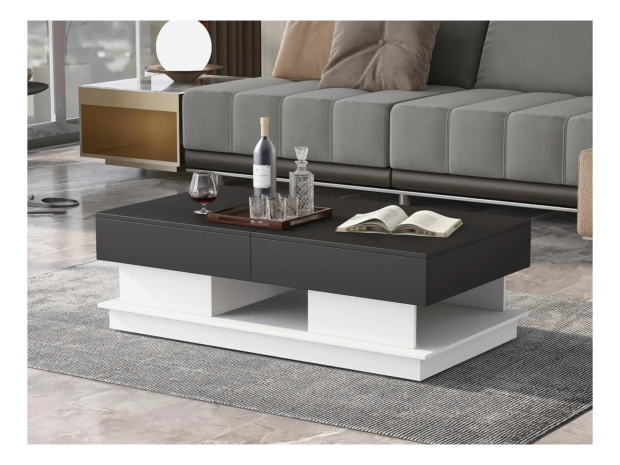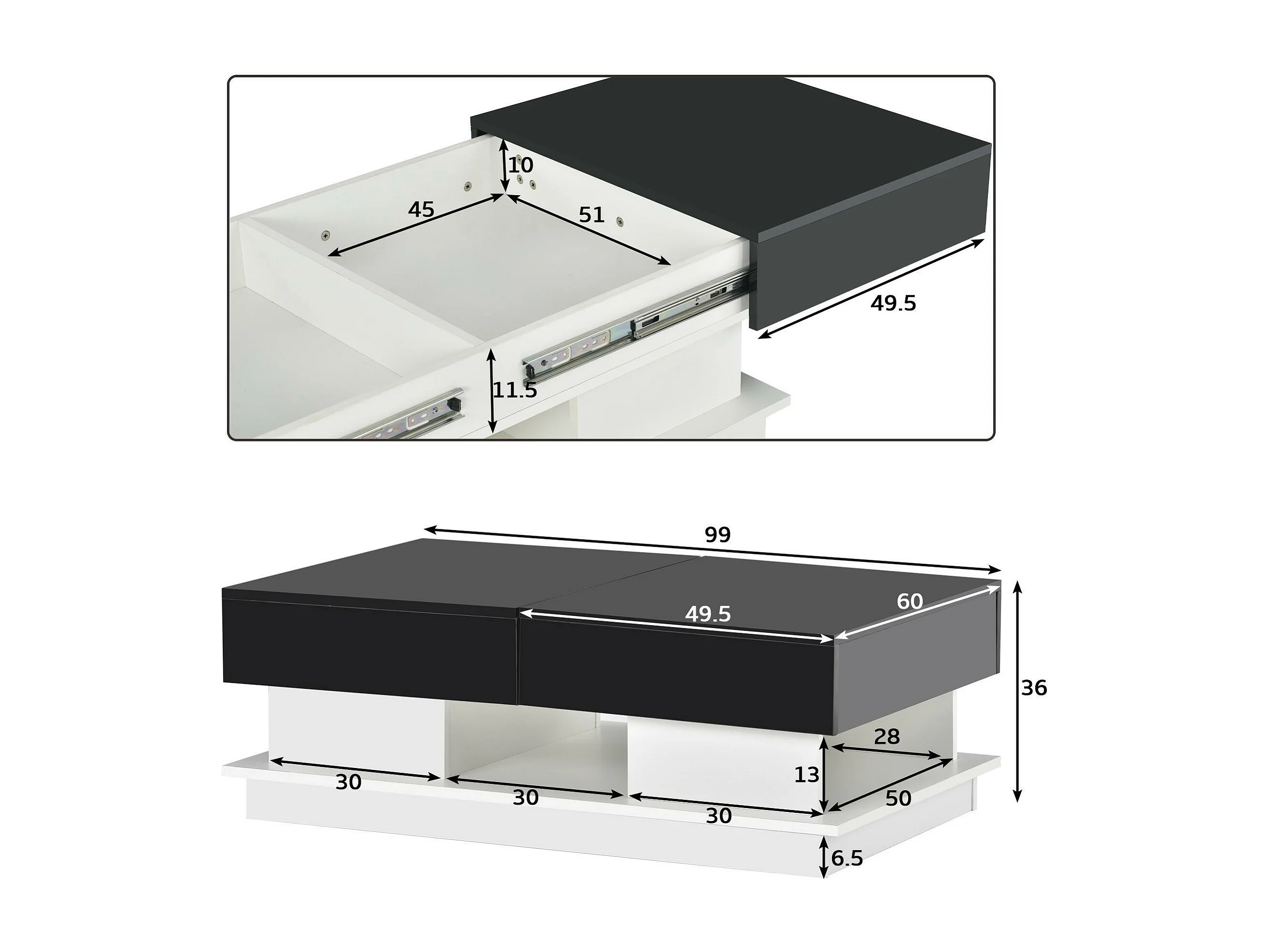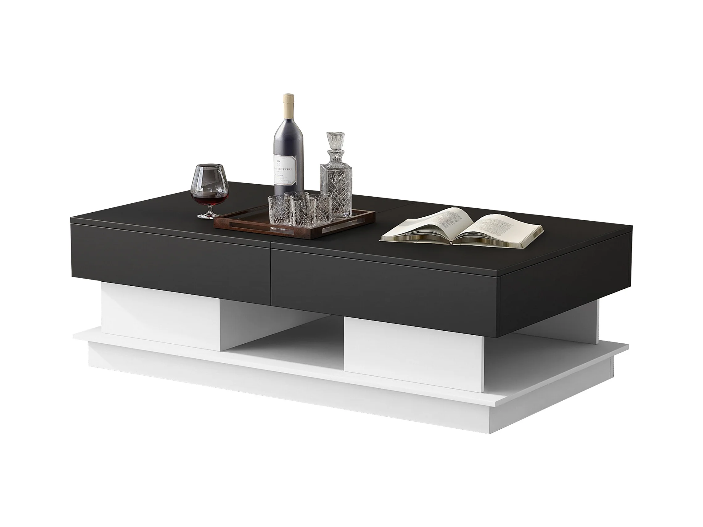 Table basse avec rangements - aspect brillant - Noir & Blanc
