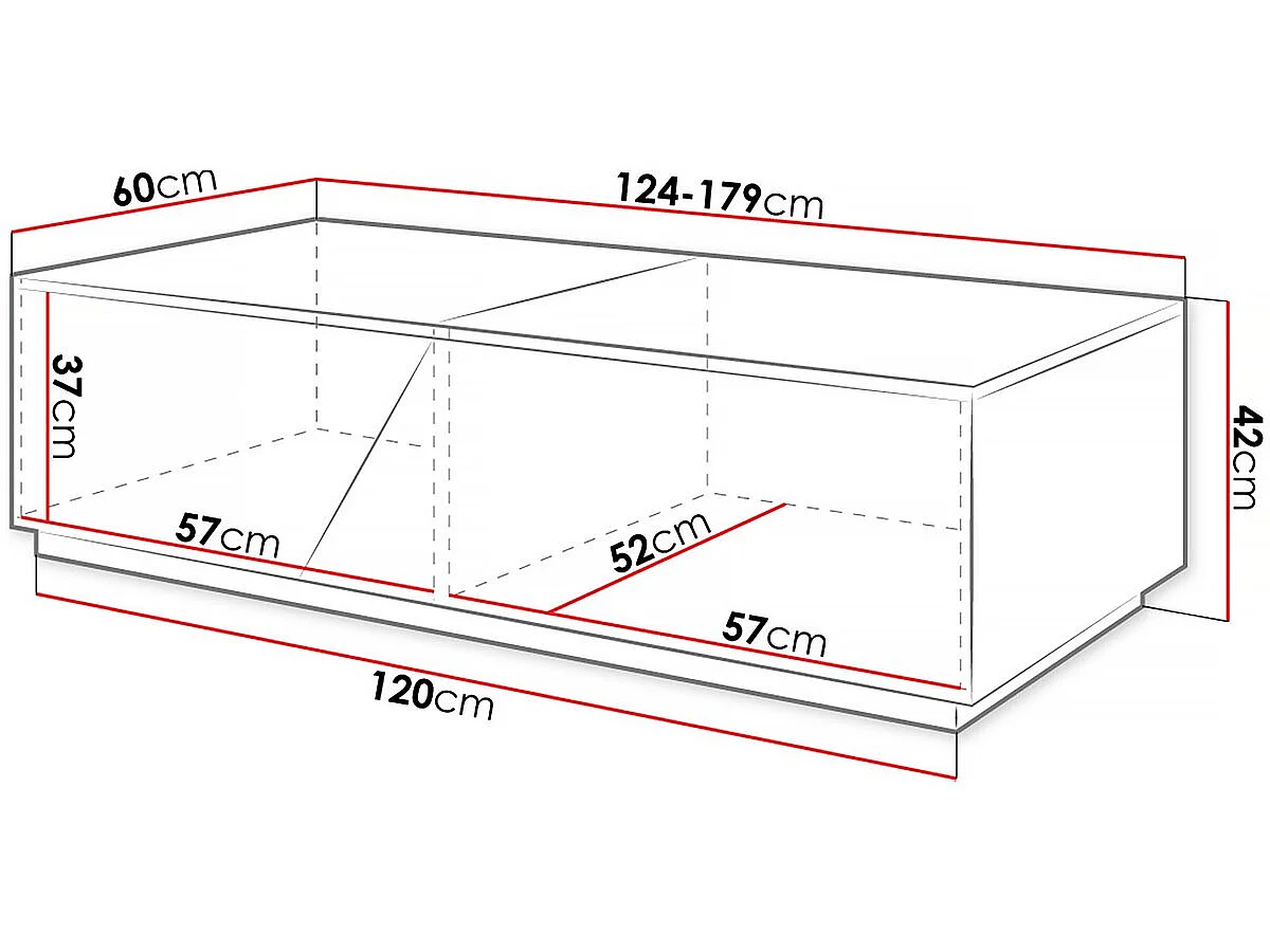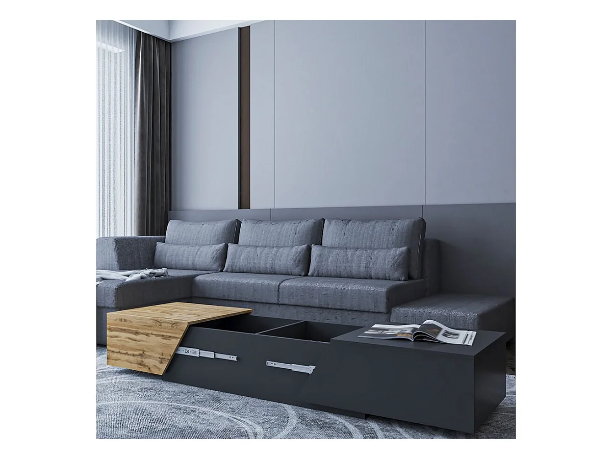 Table basse avec coffre "Ceelias" - 124 x 60 x 42 cm - Gris/Marron