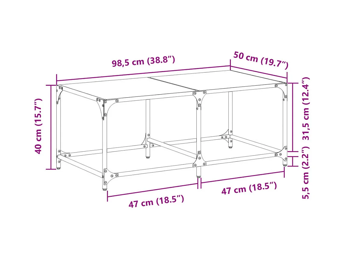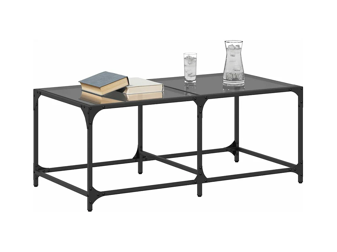 Table basse avec dessus en verre noir 98,5x50x40 cm acier