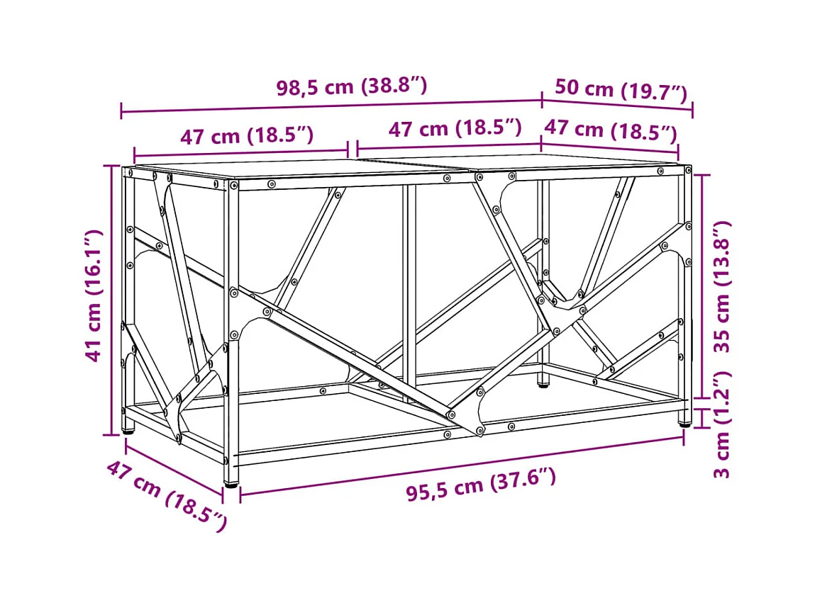 Table basse avec dessus en verre noir 98,5x50x40 cm acier