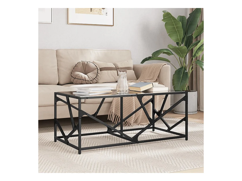 Table basse avec dessus en verre noir 98,5x50x41 cm acier