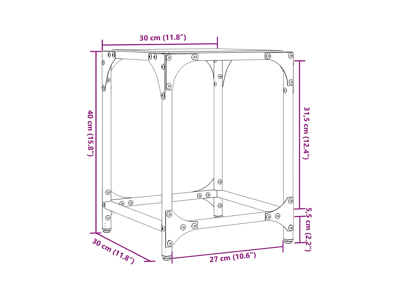 Table basse avec dessus en verre transparent 30x30x40 cm acier
