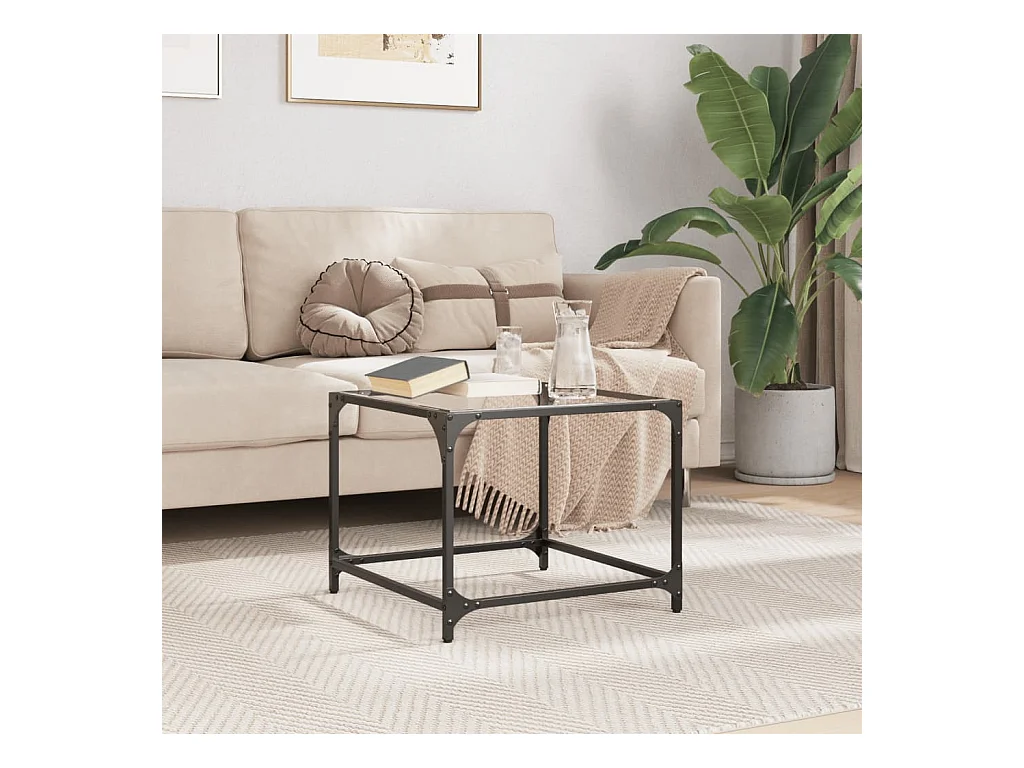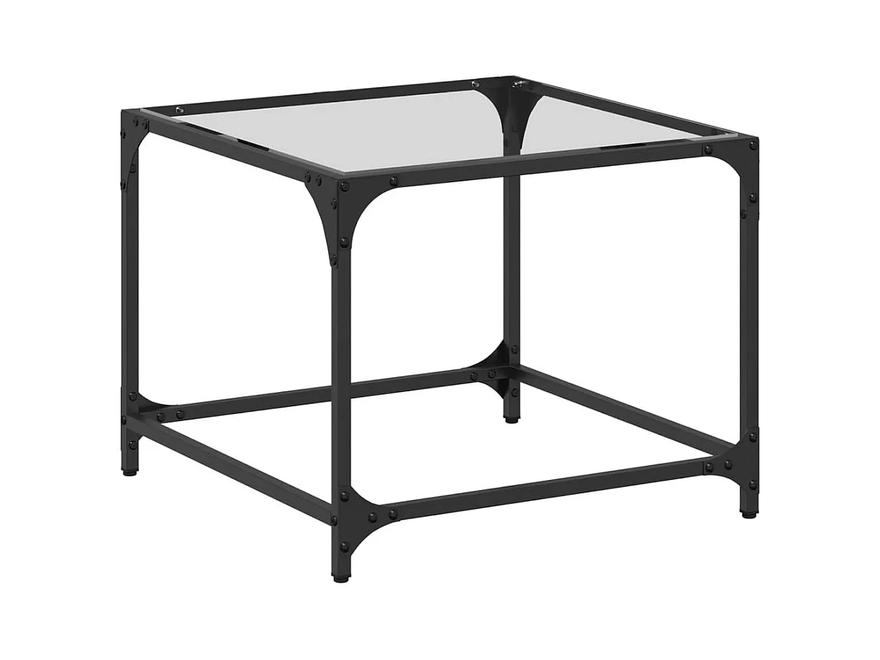 Table basse avec dessus en verre transparent 50x50x40 cm acier