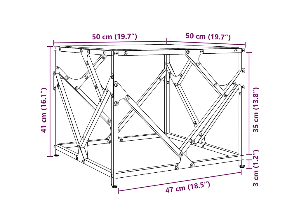 Table basse avec dessus en verre transparent 50x50x41 cm acier