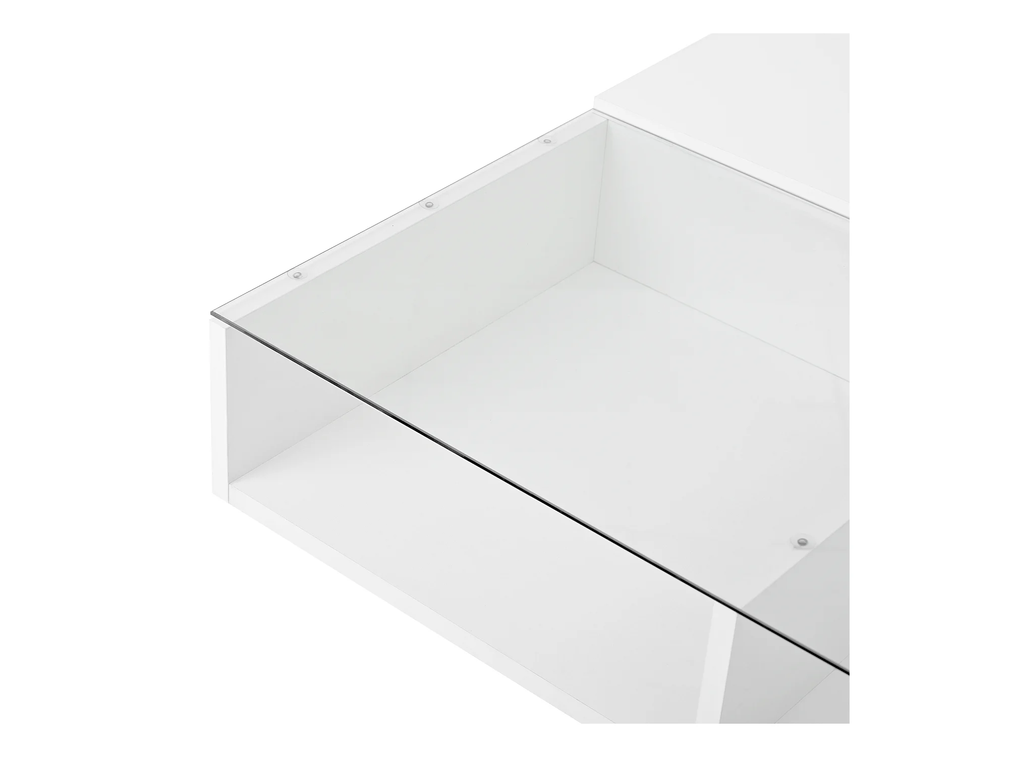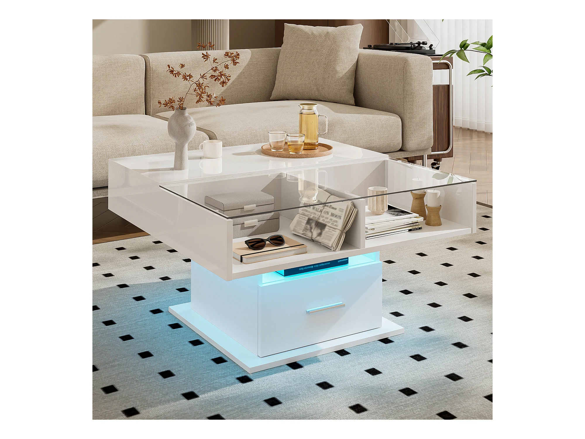 Table basse blanc avec 1 tiroir de rangement et étagères ouvertes, éclairage LED - pour salon