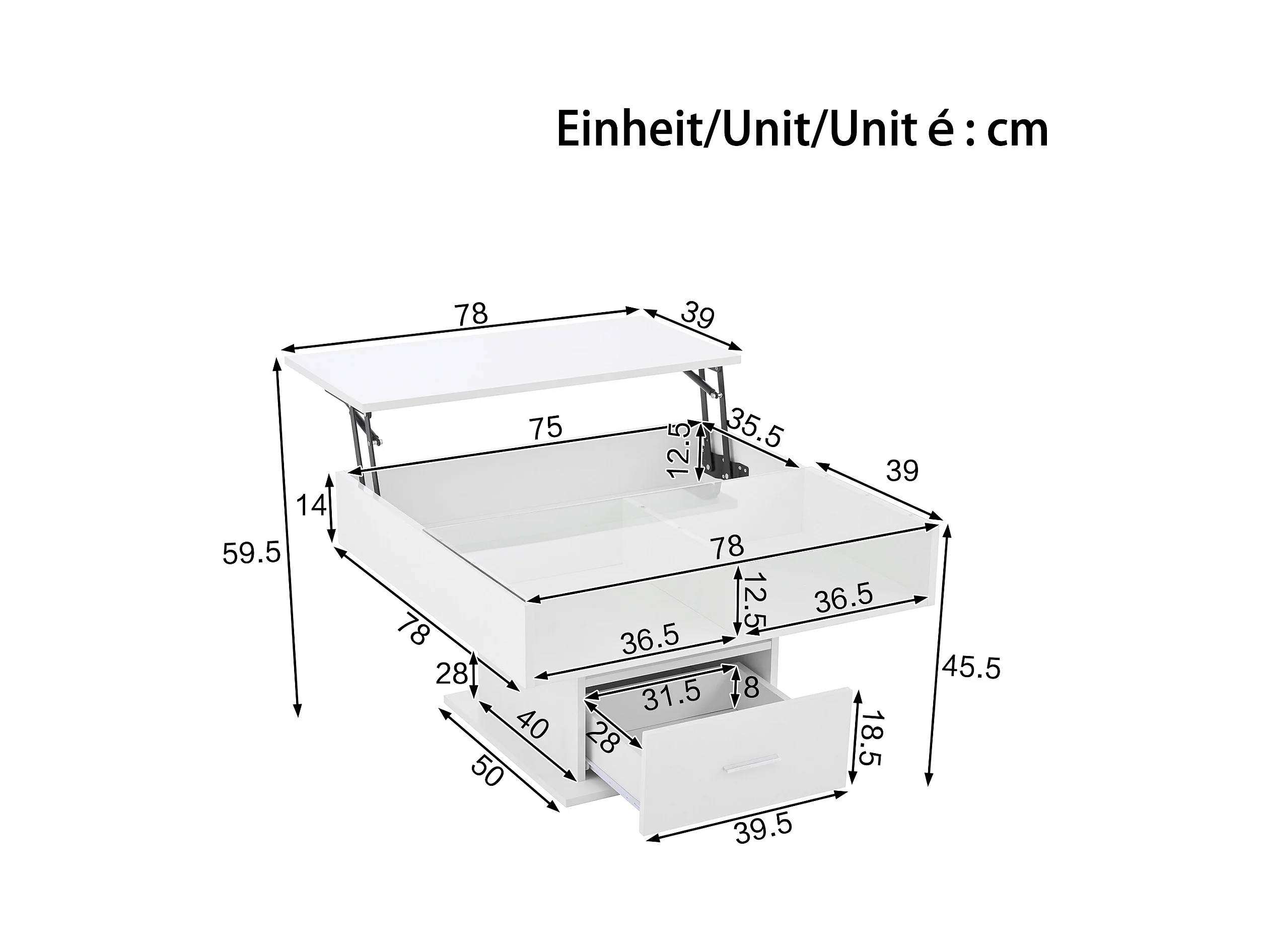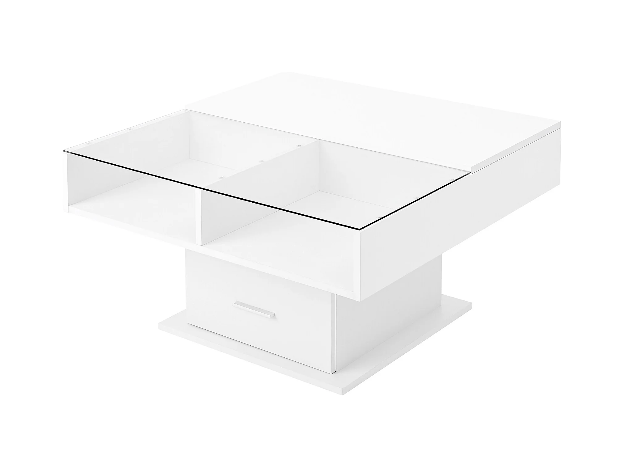 Table basse avec plateau relevable double - Table basse à 2 portes - rangement dissimulé - blanc