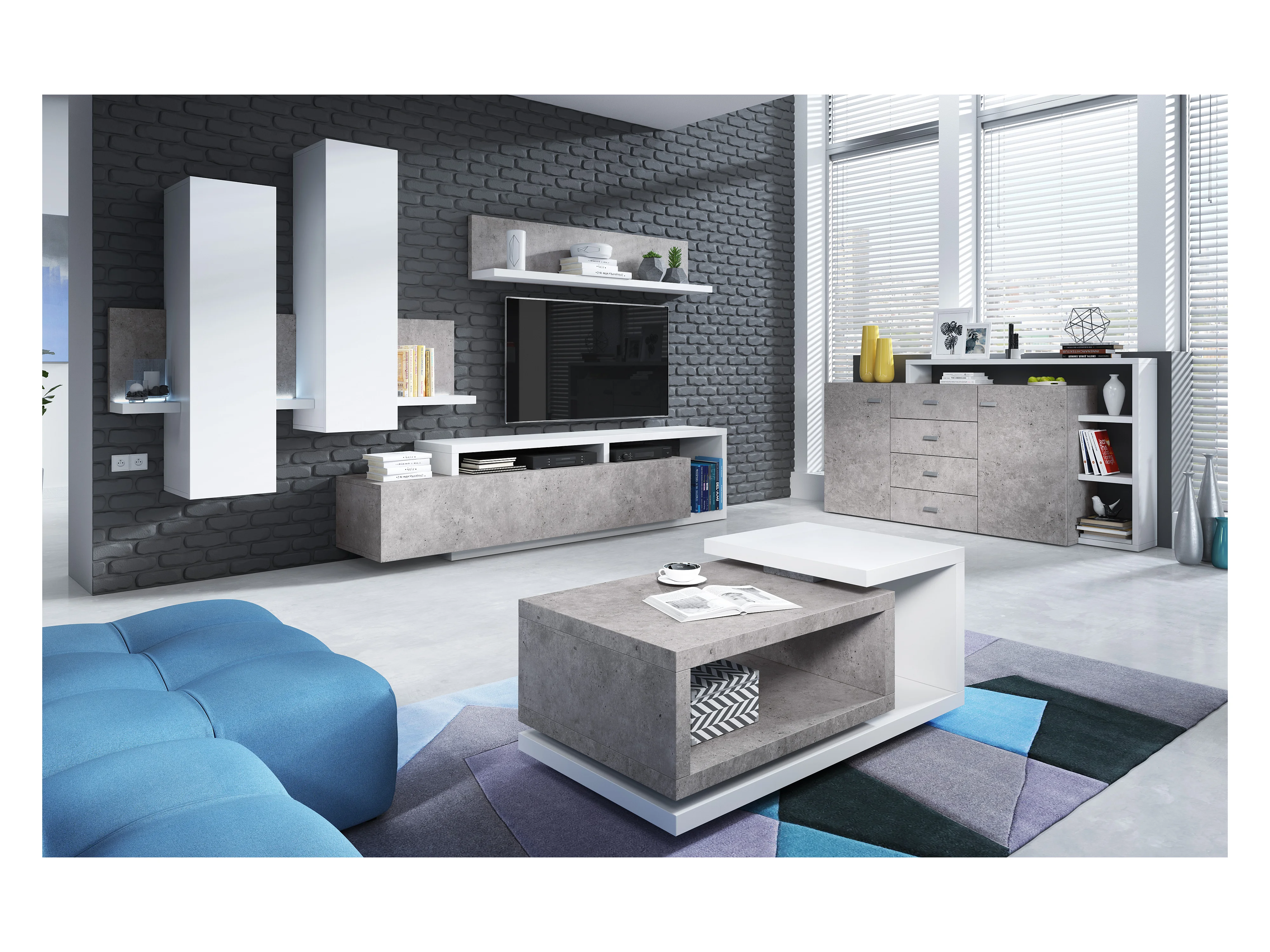 Table basse moderne en bois laqué blanc et acier noir Valina 120cm