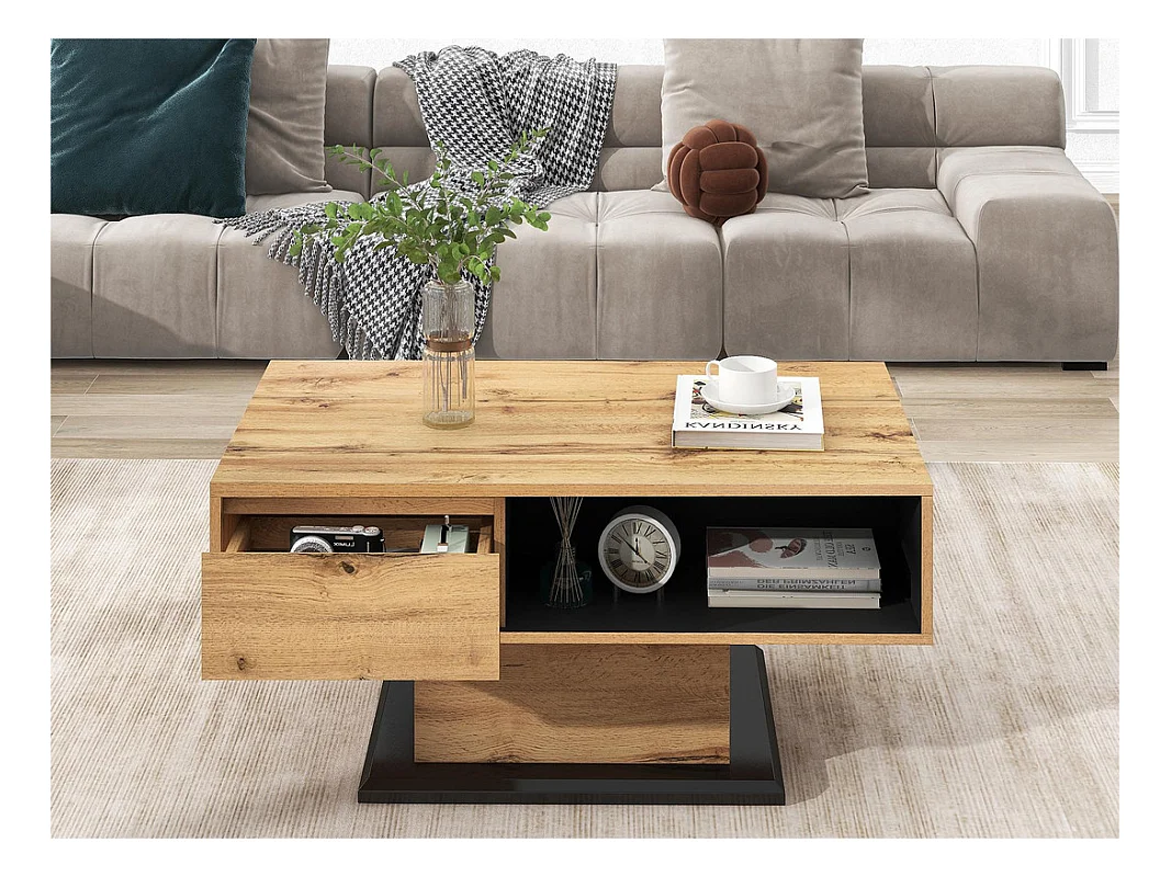 Table basse avec un tiroir et une niche - style industriel - Naturel
