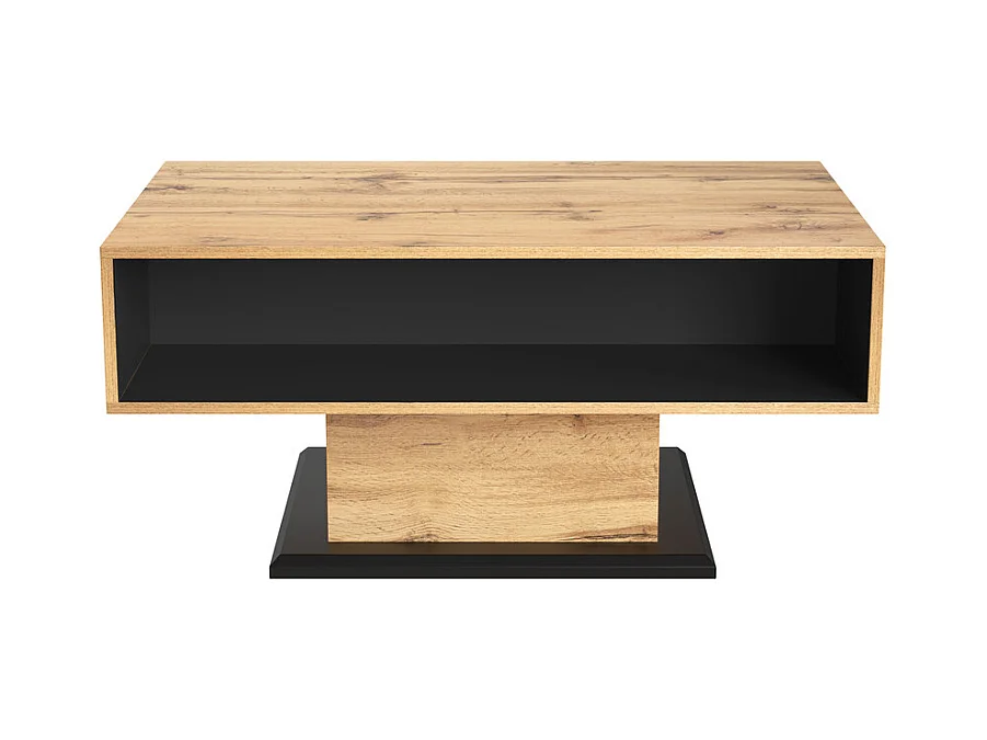 Table basse coulissante avec rangement caché - 155 x 55 x 22 cm - bois et métal - noir et naturel