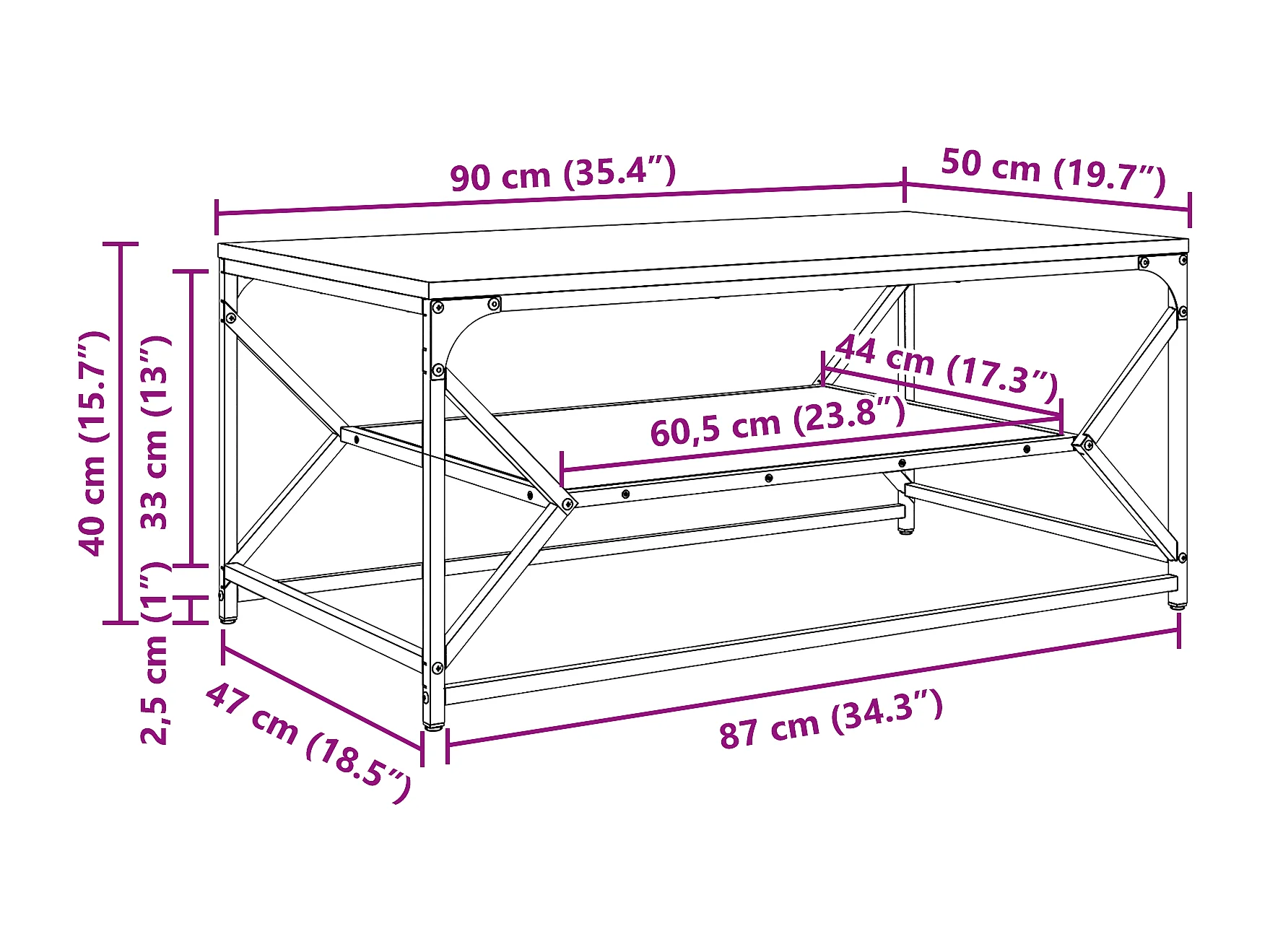 Table basse avec étagère Chêne noir 90x50x40 cm Bois composite