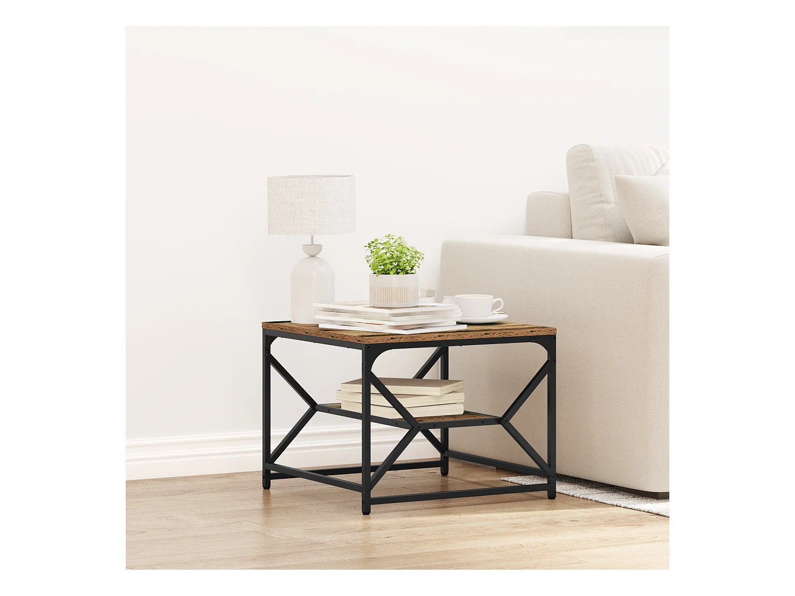 Table basse avec étagère en bois vieilli 51x50x40 cm en bois technique
