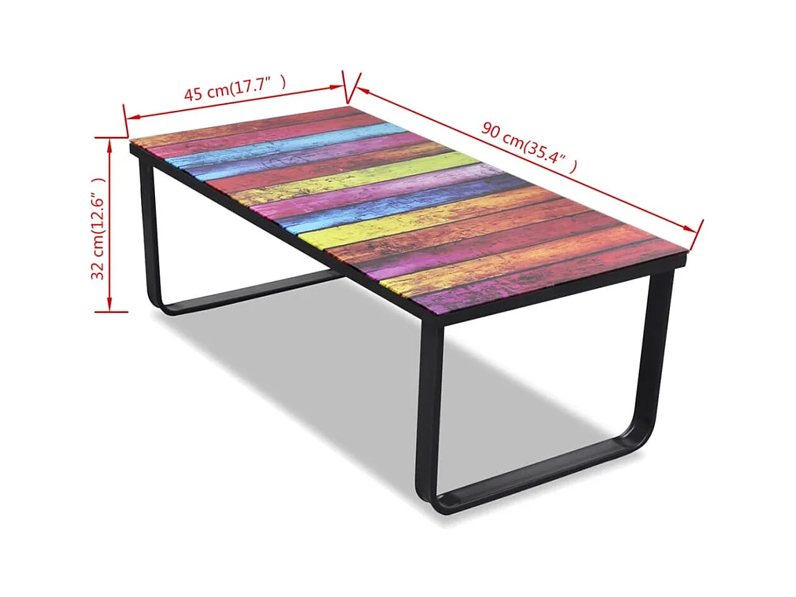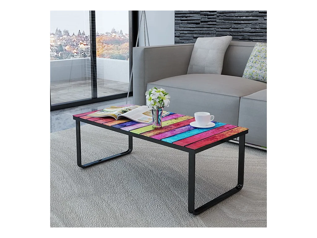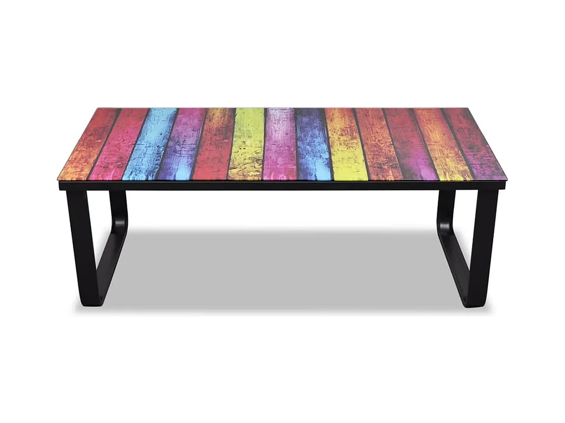 Table basse avec impression d'arc-en-ciel Dessus en verre