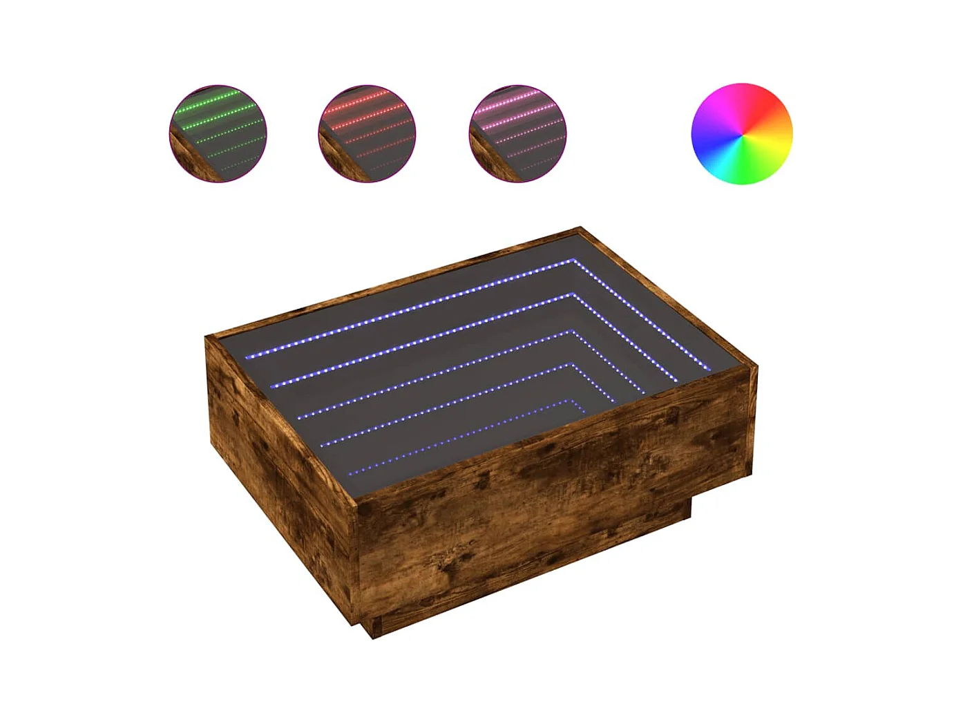 Table basse avec LED infini chêne fumé 70x50x30 cm