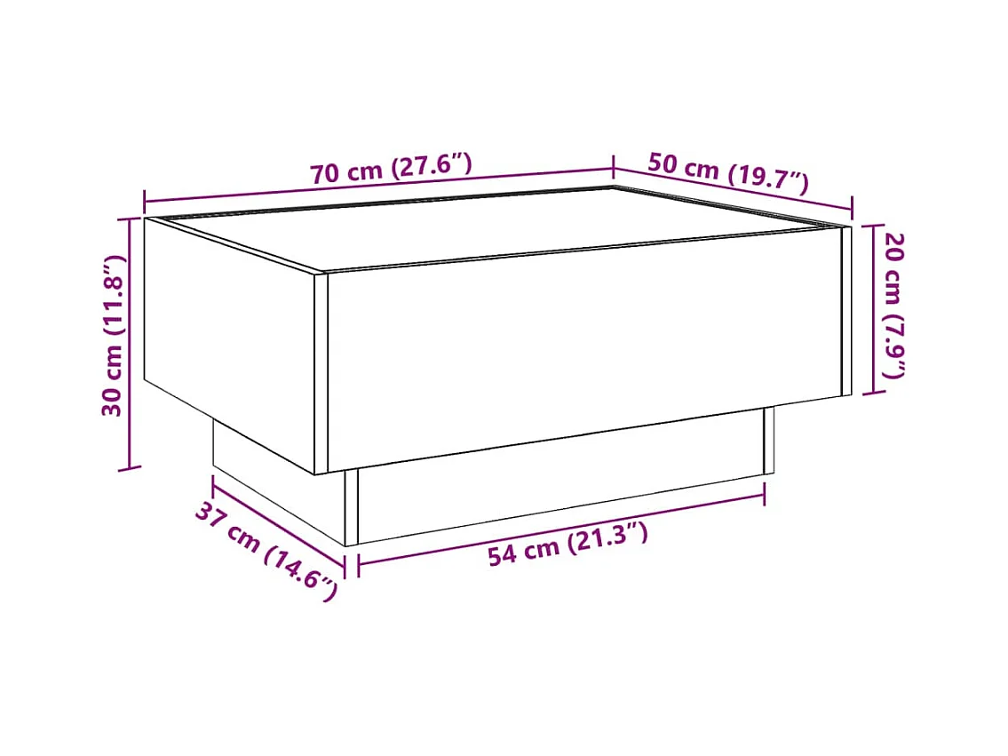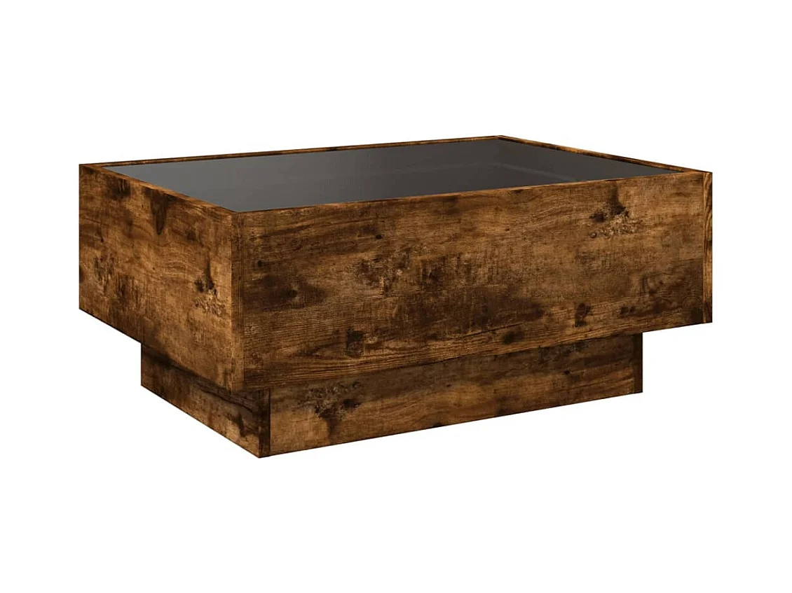 Table basse avec LED chêne fumé 70x50x30 cm bois d'ingénierie