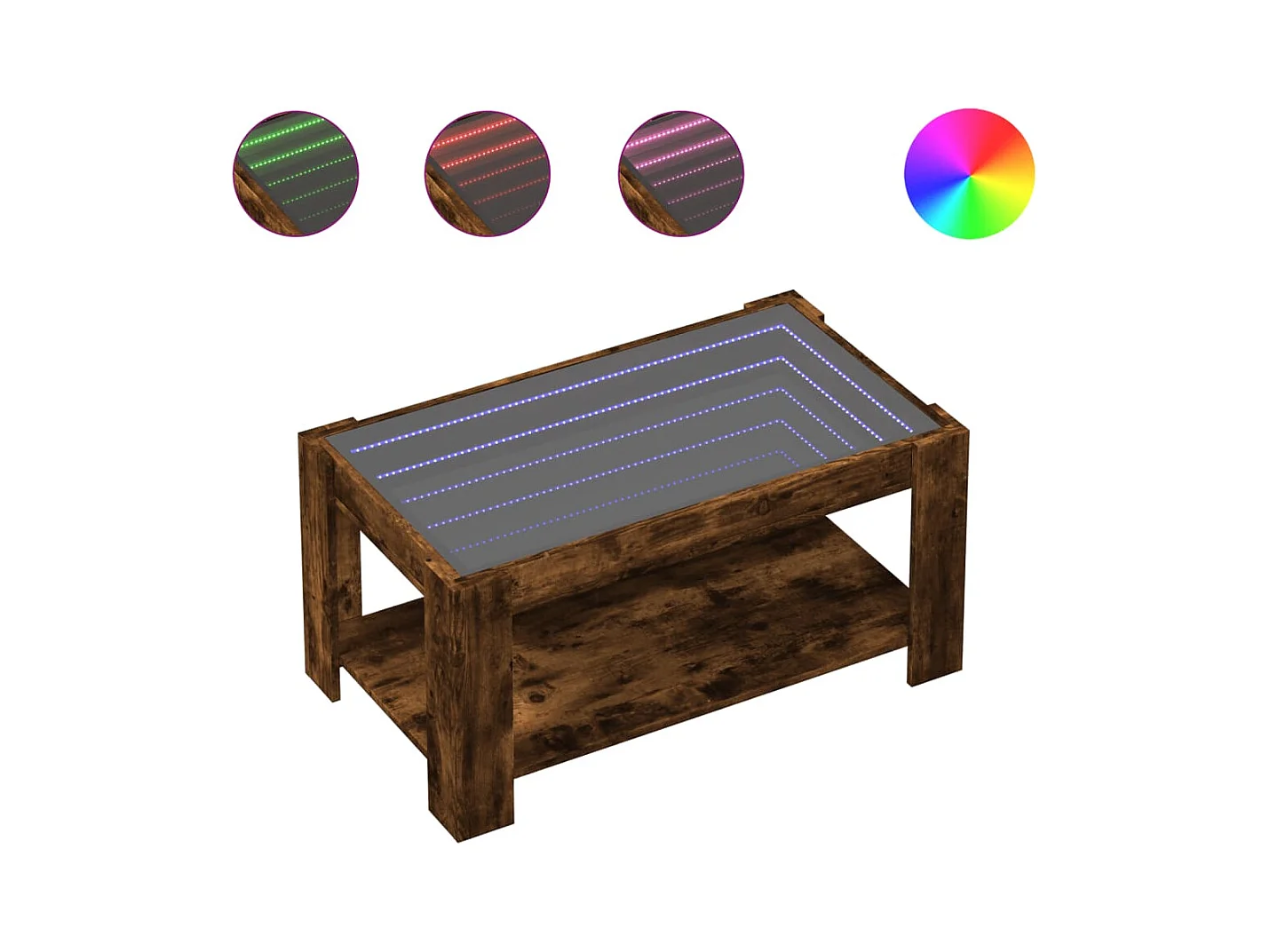 Table basse avec LED chêne fumé 93x53x45 cm bois d'ingénierie