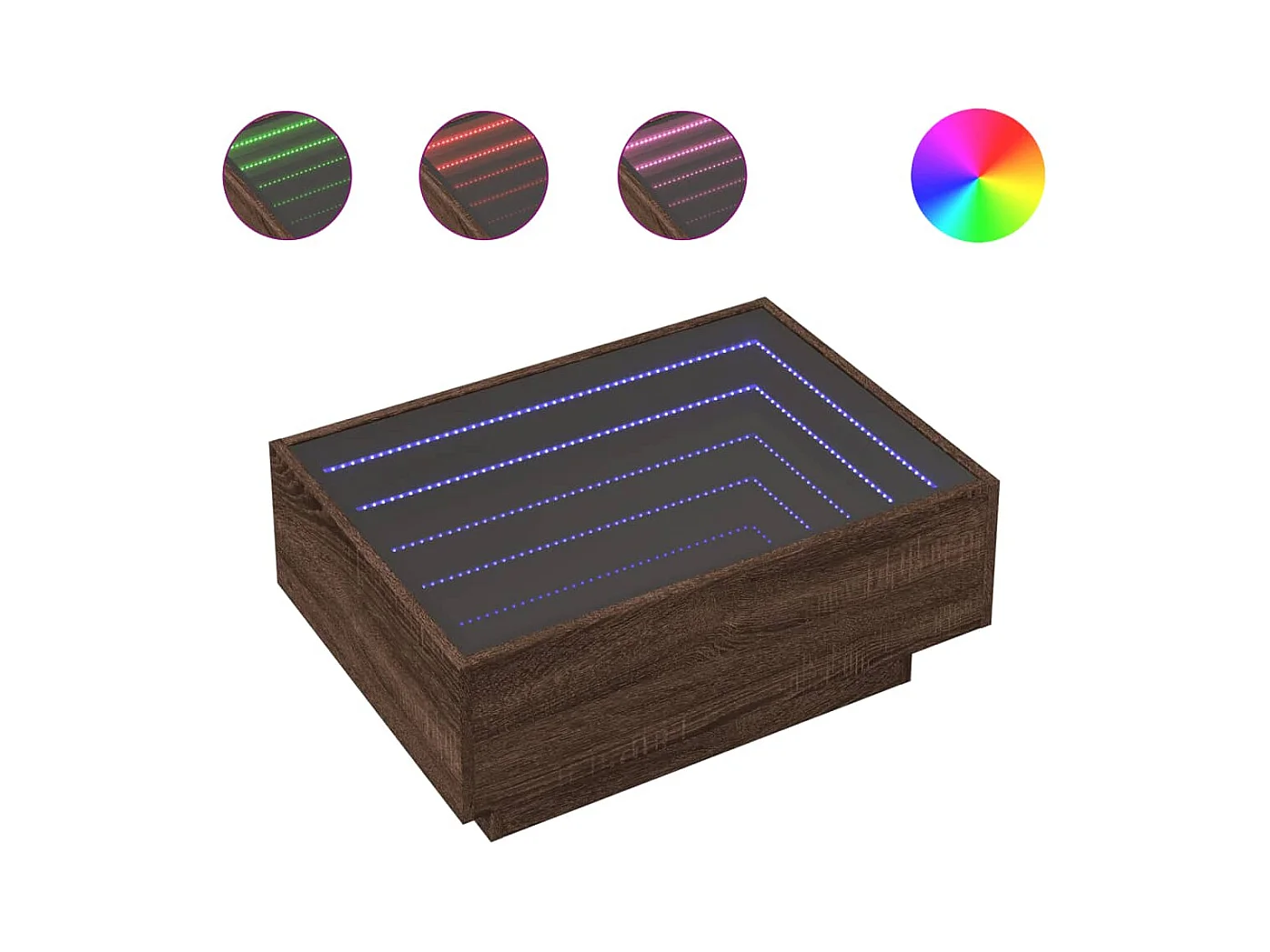 Table basse avec lumières LED chêne marron 55x55x31 cm