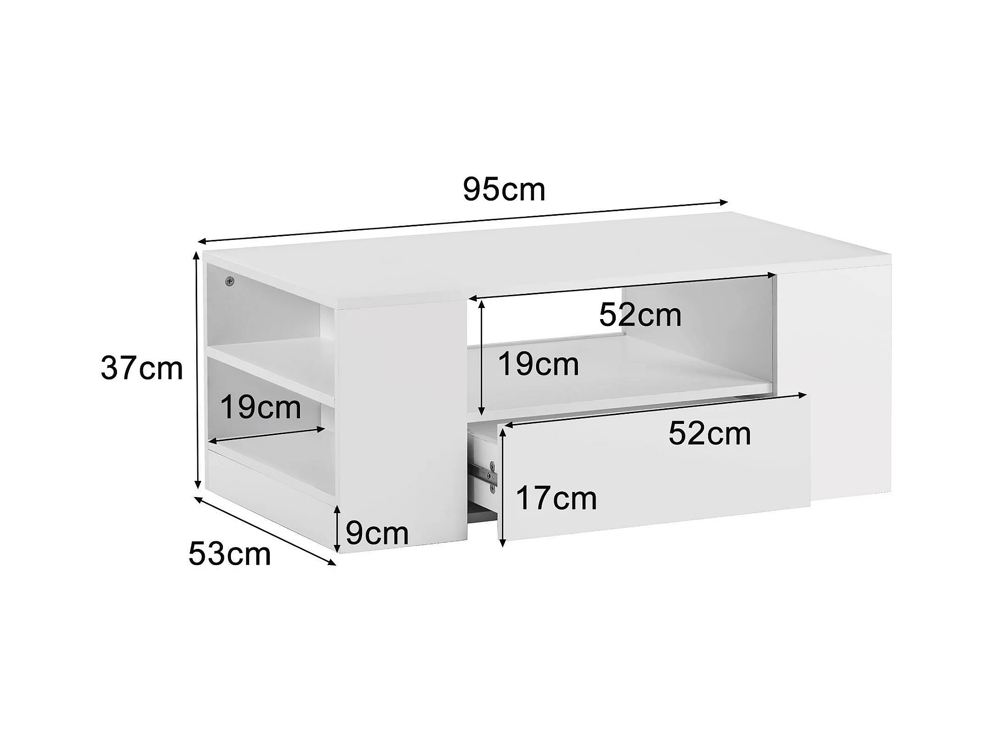 Table basse avec LED + compartiments + tiroir - aspect brillant - Blanc
